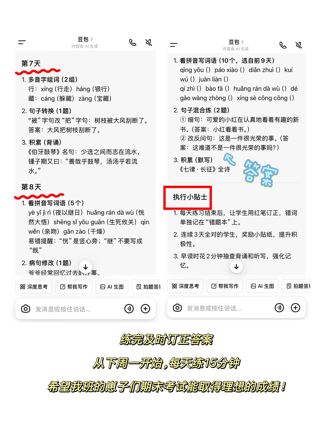 2. 句子:专攻4类基础题型——陈述句改反问句、肯定句双重否定句、缩句、修改常见病句等,每天1-2题,练会一类再推进下一类。
