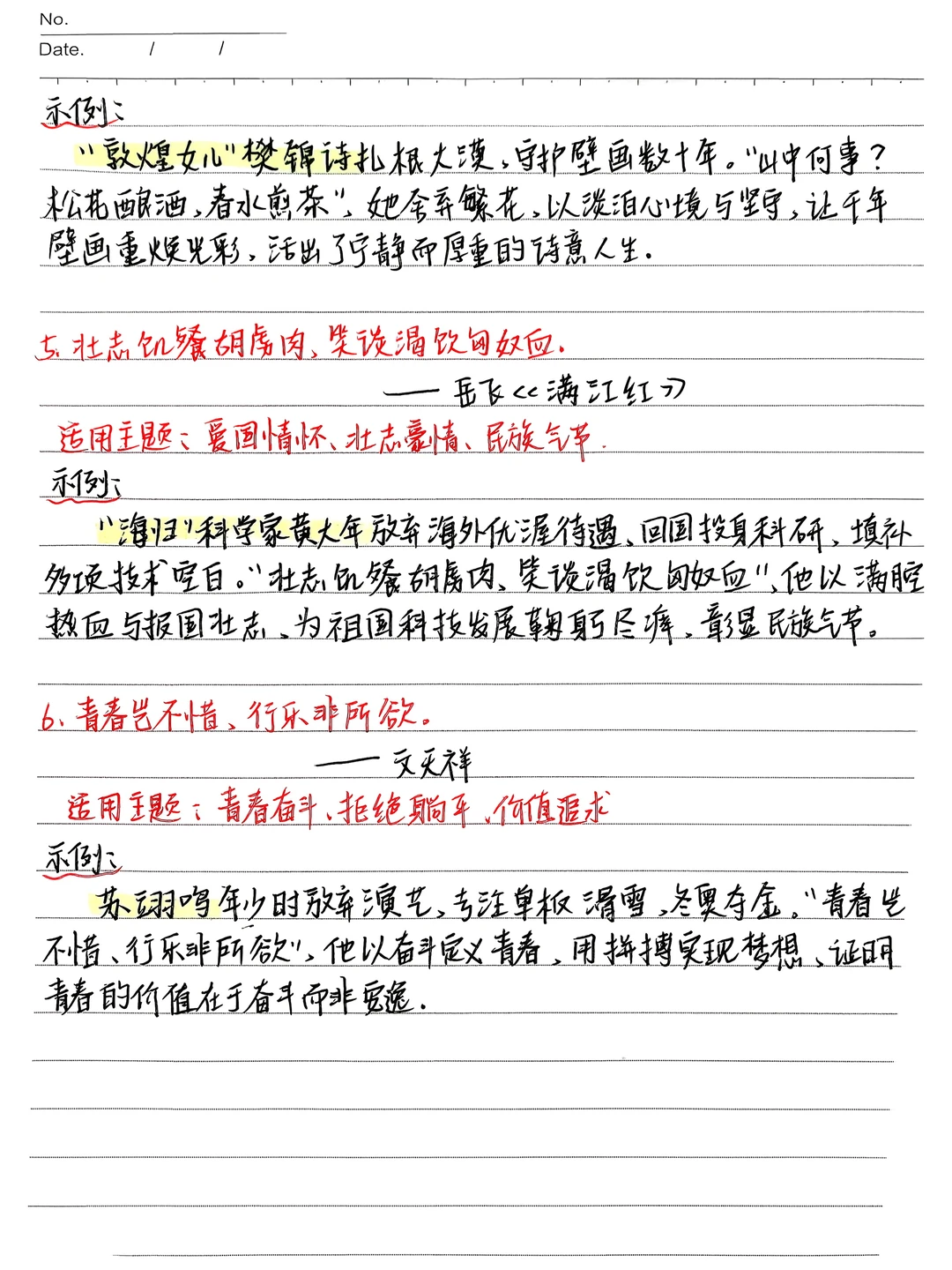 每一句古诗词都精准搭配主题+示例,既有文化厚度又接地气,完美避开考场烂大街套路✍️