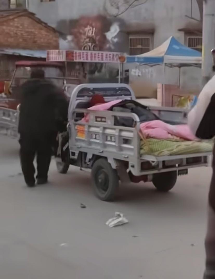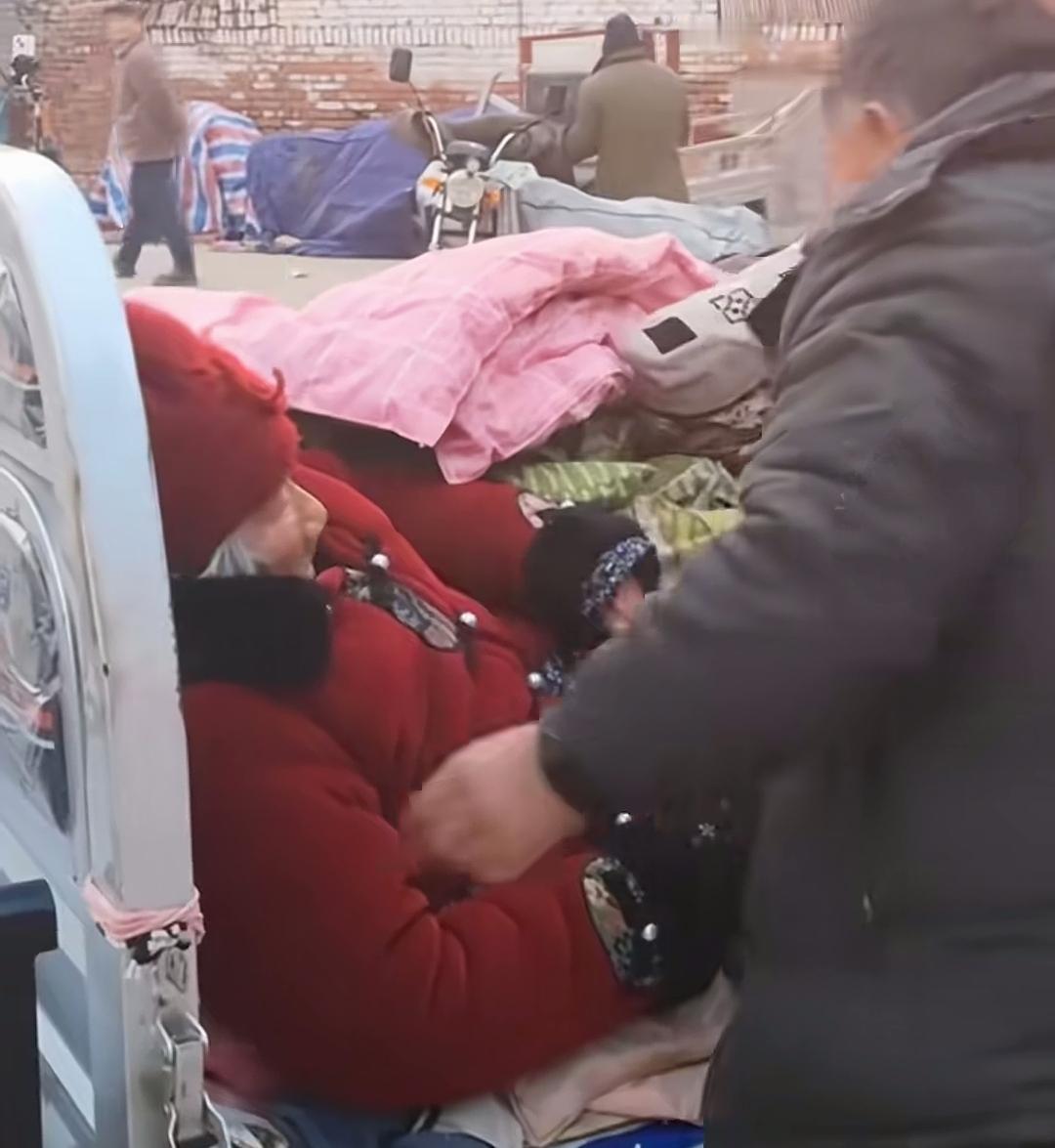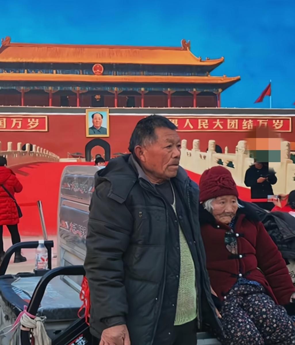 一位大哥拉着年迈的母亲,来到吴营村天安门墙绘前认真拍照,这一幕让人感到特别心酸!