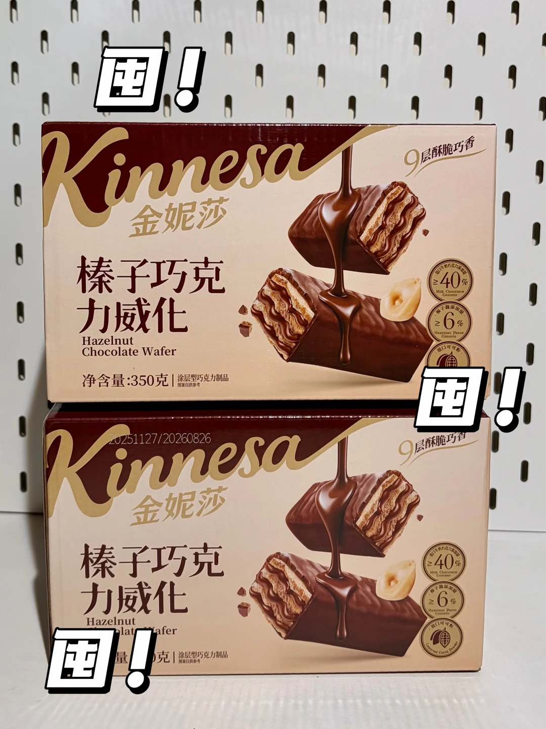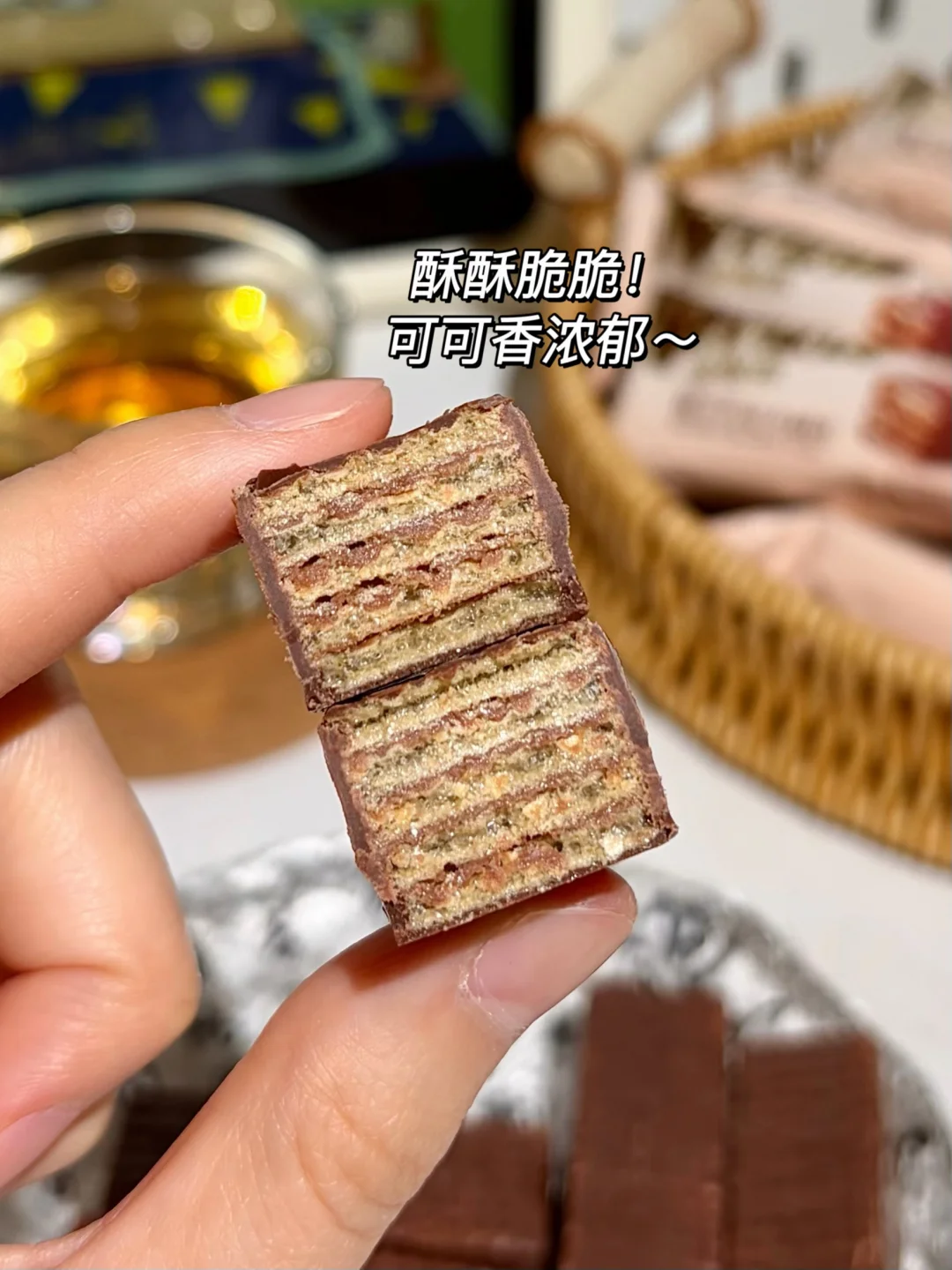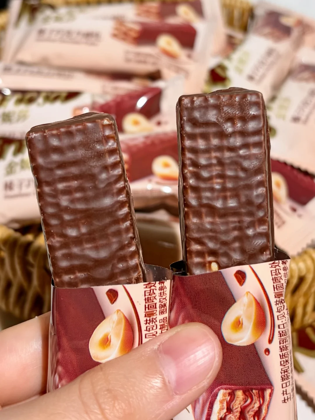 给巧克力🍫脑袋们挖到好东西了!! 建议大家都囤上这个榛子巧克力🍫威化! 不夸张!我吃一口就爱上!👏🏻 纯可可脂的,而且0反式!真实添加了榛子酱! 5层威化➕4层榛子夹心!口感酥酥脆脆的好丰富! 一根才50kcal左右!美味轻负担~ 我那巧克力控闺蜜来我家就咔嚓咔嚓吃个不停! 刷剧的时候也可以安排上!好吃😋到根本停不下来!