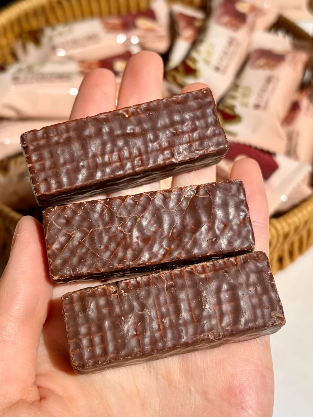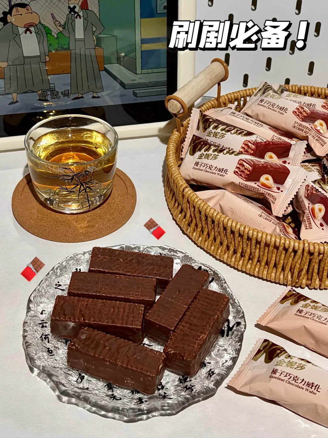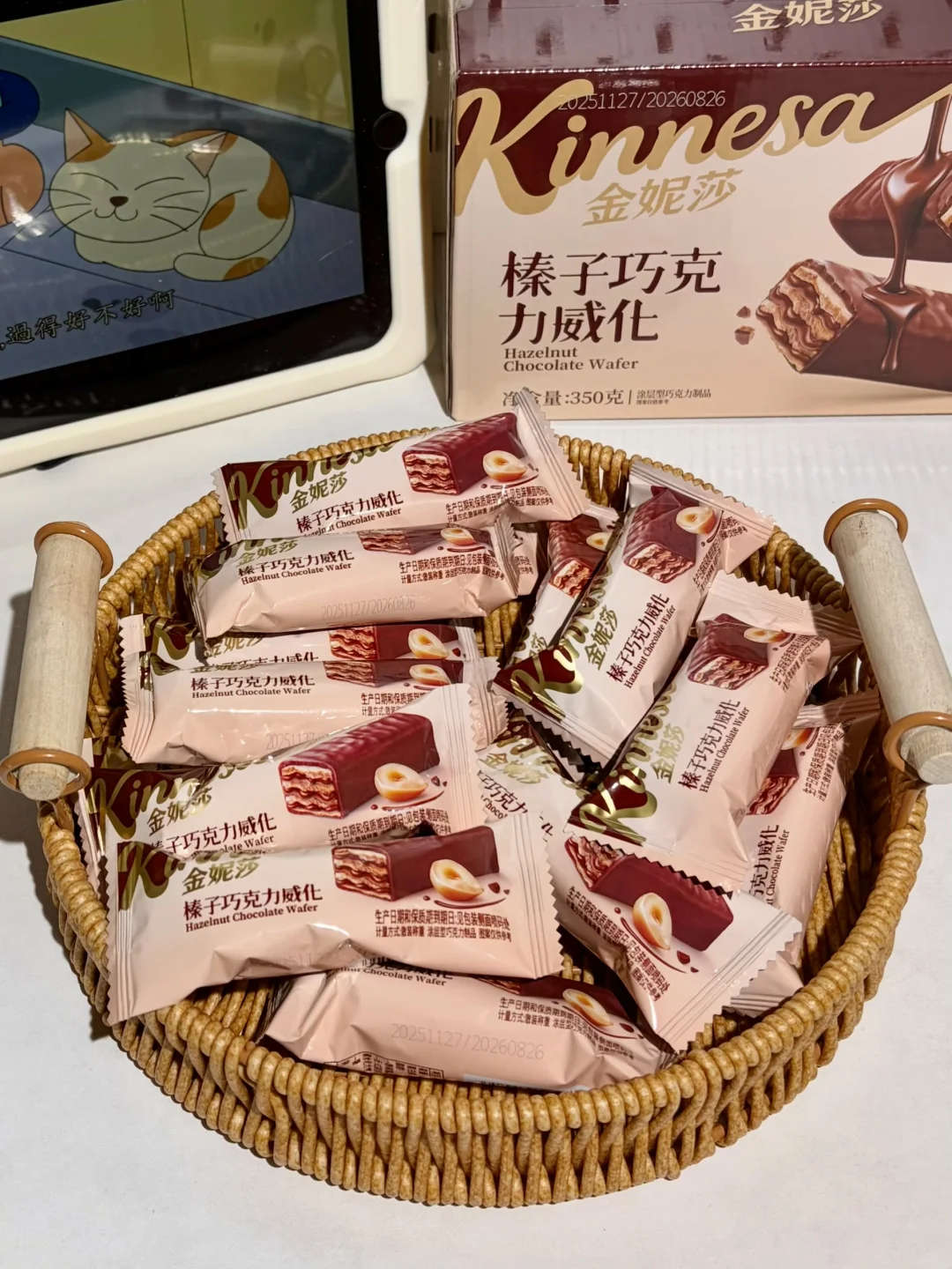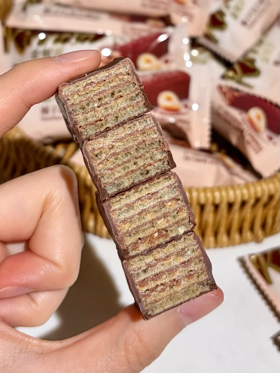给巧克力🍫脑袋们挖到好东西了!! 建议大家都囤上这个榛子巧克力🍫威化! 不夸张!我吃一口就爱上!👏🏻 纯可可脂的,而且0反式!真实添加了榛子酱! 5层威化➕4层榛子夹心!口感酥酥脆脆的好丰富! 一根才50kcal左右!美味轻负担~ 我那巧克力控闺蜜来我家就咔嚓咔嚓吃个不停! 刷剧的时候也可以安排上!好吃😋到根本停不下来!