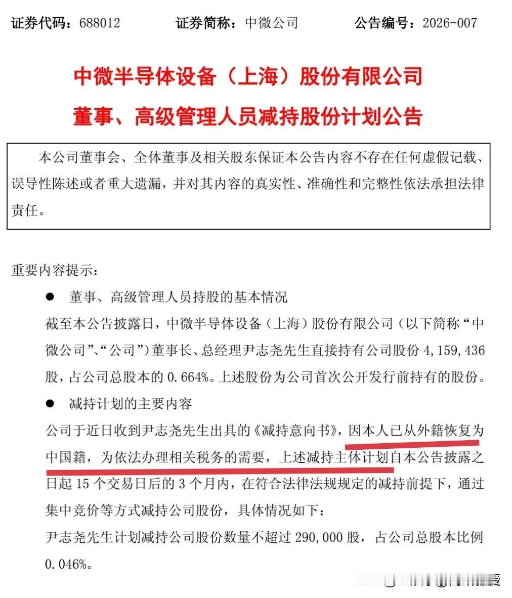 81岁的中微董事长尹志尧,用一生诠释何为家国情怀!1980年他赴加州大学洛杉矶分校攻读物理化学博士,后入美籍深耕半导体。2004年毅然回国创业,带领团队突破5nm刻蚀技术,打破海外垄断。 20年后的今天他恢复中国籍,为缴相关税费减持仅0.046%股份(当前持股0.664%),与那些套现改善生活的股东截然不同。 中微公司员工持股计划覆盖广泛,尹志尧占股很少,2025年新增1000万股限制性股票激励,惠及2458名员工。另外,2024年中微公司员工人均薪酬58.31万元,研发人员薪酬达64万,远超半导体行业20.47万的平均水平,稳居行业前列。在美限制政策下,他用行动扎根中国半导体,这样的赤诚之心,值得所有人致敬!