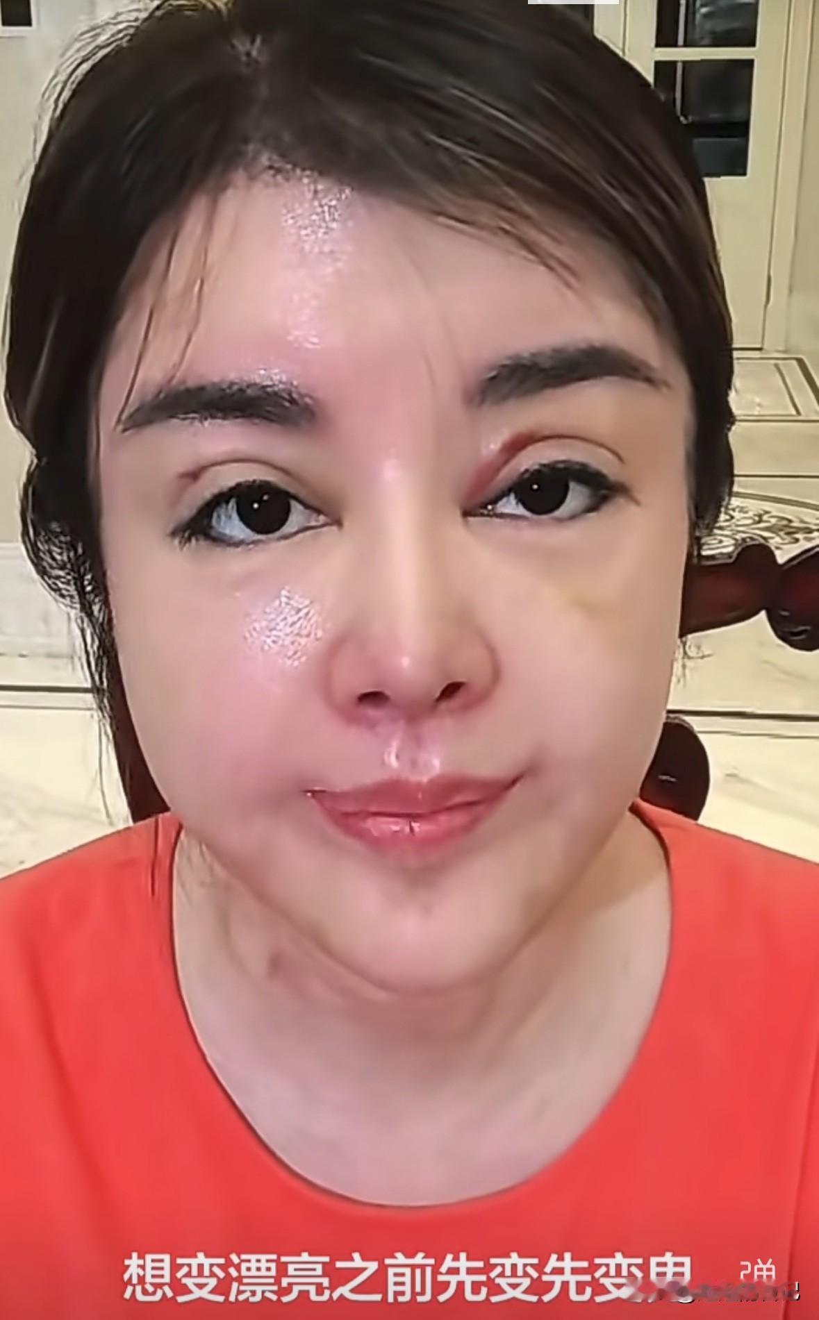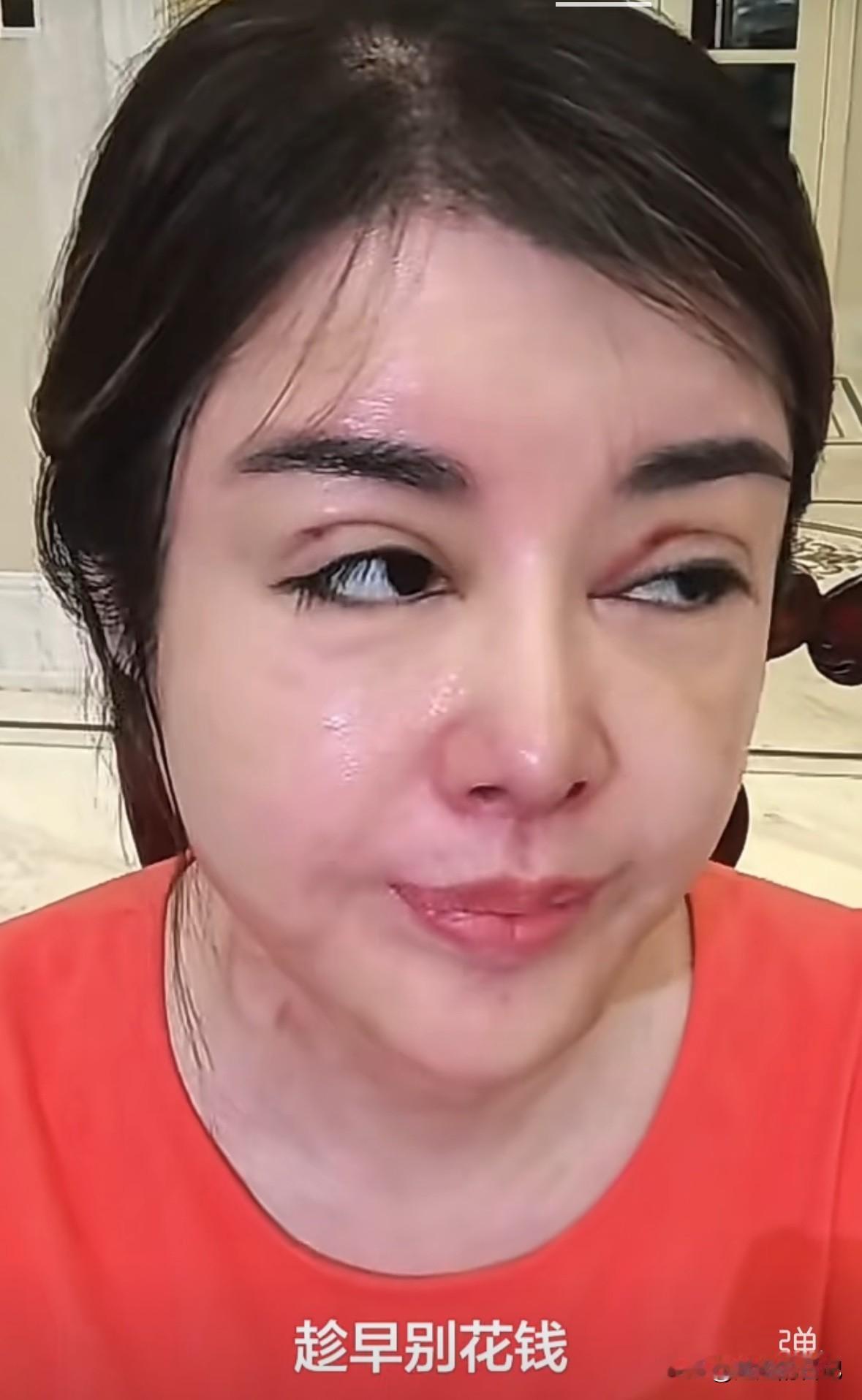 于文红,你别吓我,这样的脸谁敢去做, 她自己说,“要想美,先变鬼”, 说实话,每个月一次全麻,真容易变鬼回不来了。 她就这个频率,就为了让自己看着年轻点,有啥意义呢。 上千万的给任任一个外人买衣服,自己小儿子爸爸直播间说“你不给小宝买衣服”。 你所有的亲人都算计你钱,就大宝不算计,那是因为你只爱他,你所有的财产都是他的,他不需要算计。 这样的大眼睛,大双眼皮,看着真吓人。 估计是前段时间大家说她脖子太丑,她赶紧做了整形,打针就这样,坚持不了几天,而且维持低时间越来越短,皮肤状态越来越差。 真不敢想,她老了得啥样……