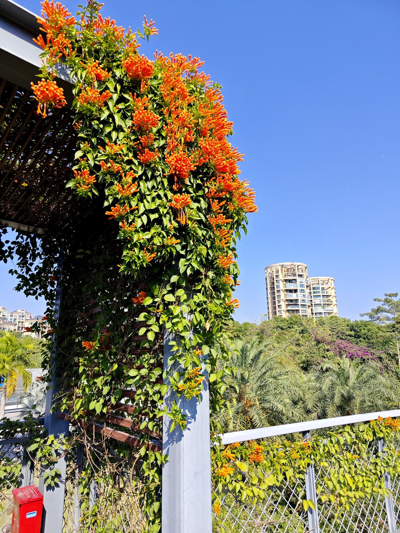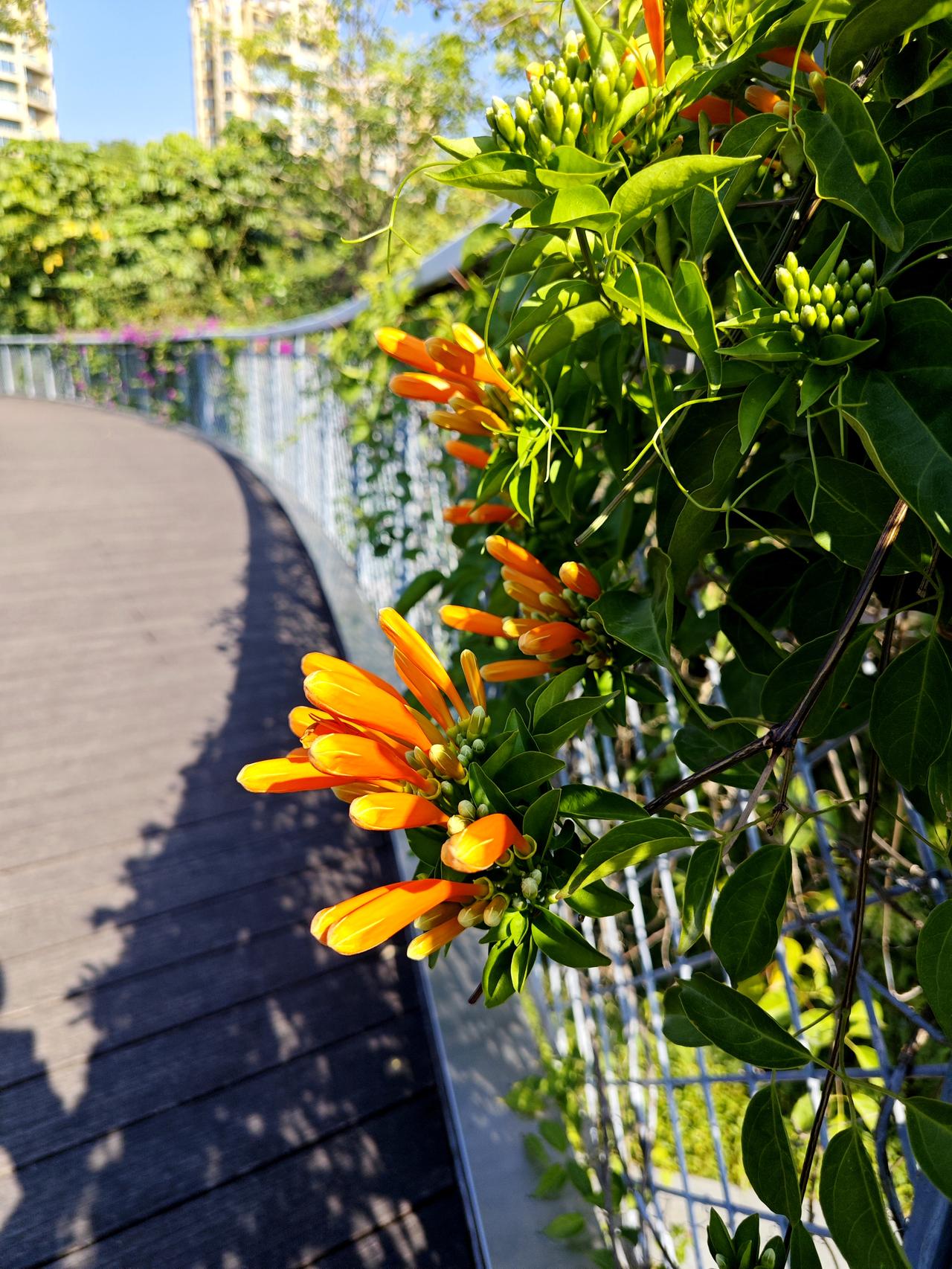 [途虫摄影]花城深圳百花盛开,元月份,轮到炮仗花了。这是深圳市福田区香蜜公园的炮仗花,正是赏花的最好时候,在这座公园特有的树顶观光栈道上,能尽情欣赏炮仗花的热情似火。