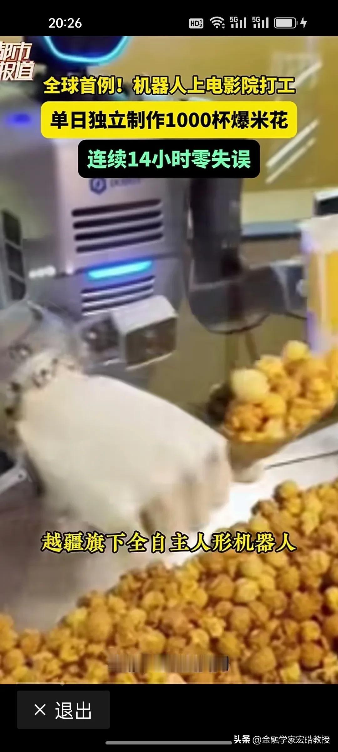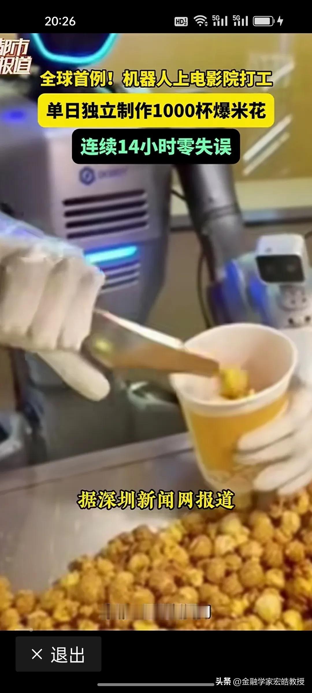 马斯克又发出惊人言论:不用费劲攒退休金,如果价格下降,生产力提升,税收等能成一件,10年后退休金根本没用。 再看图10,深圳已经有电影院用越疆人形机器人卖爆米花了,全程无人看管,连续工作14小时不停,准确度100%,还有的地方已经有机器人摊煎饼,以后人类的劳动确实有很大一部分都可以用机器人替代。 宇树机器人创始人王兴兴也说过类似的话,“十年后大家都不用工作了,吃喝都有机器人提供,大家想干嘛干嘛。” 以前有人说“十年后房价如葱”,这预言虽然成真,可手头没钱依旧买不起房,来机器人服务,也得花钱买单。他们这些顶尖科技领域大佬们的话虽有道理,可当下普通人生活离不开柴米油盐,还有子女的教育和医疗,努力赚钱才是硬道理!