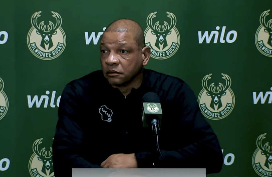 赛后,雄鹿主帅里弗斯接受了记者采访,谈到了字母哥最后的封盖和抢断:
