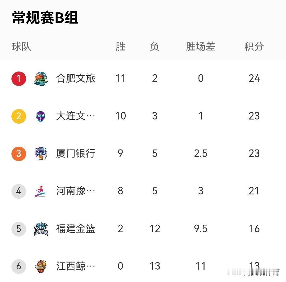 WCBA中国女篮职业联赛积分榜(第14轮) A组 1、东莞新世纪一枝独秀,14轮全胜 2、山西、江苏、四川、山东不相上下 3、武汉、上海、新疆稳居前八 4、北京、陕西、浙江挣扎在季后赛边缘 B组: 合肥、大连、厦门为晋升A组而努力。