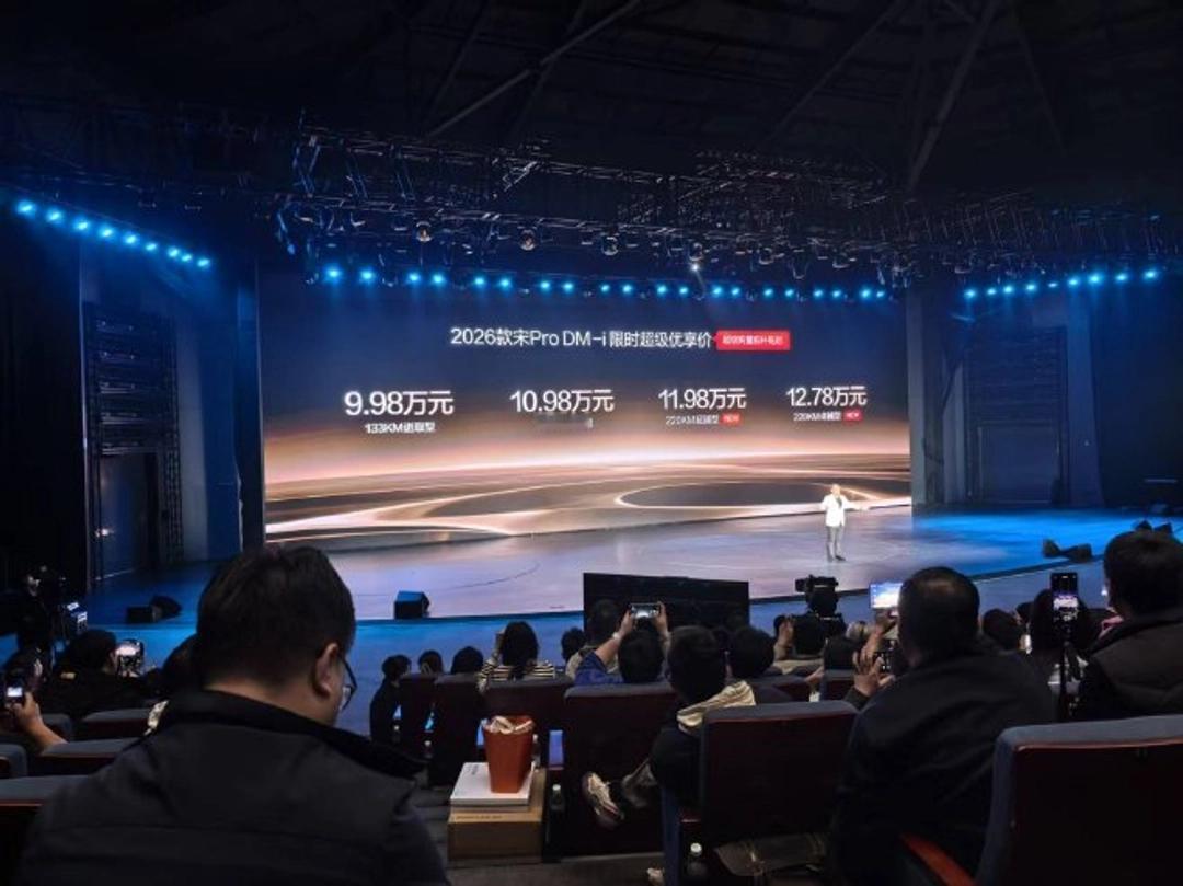 比亚迪疯了?9.98万给220km续航,让友商怎么活! 1月10号晚上,比亚迪在深圳整了个小活动,顺便把2026款宋Pro DM-i长续航版的价格撂出来了。 补贴后11.98万起,限时优享价直接干到9.98万。这个价格一出来,整个A级SUV市场都得抖三抖。 先说最核心的。220公里纯电续航,什么概念?按官方说法,北京通勤族一天20公里,充满电能跑半个月。就算是每天40公里往返的,一周充一次也够了。 这基本就是把插混当纯电开的节奏。电池容量干到了26.6度,比以前大了快一倍。满油满电能跑1600公里,亏电油耗才3.2升,这数据看着就吓人。 配置上也挺狠。一体式冷暖冰箱、前排座椅通风加热、15.6英寸大屏、天神之眼C智驾系统,这些以前得十五六万才有的东西,现在十万出头就给你配齐。还整了两个新颜色,星河米、翠峰绿,听着就挺唬人。 2025年宋Pro DM-i卖了23万多台,是A级新能源SUV的销量冠军。累计用户突破100万。这基本就是靠着性价比打天下。现在长续航版一出,估计又要收割一波。 比亚迪这招,说白了就是在掐市场的脖子。当别家还在133公里续航上挤牙膏,它直接给你翻倍。9.98万这个价格,别说燃油车了,连一些纯电动车都得慌。 这不是简单的价格战,这是在重新定义插混的价值。对咱老百姓来说,选择多了当然是好事。但对整个行业来说,不跟进就得死,跟进就得赔本赚吆喝。 这场仗,比亚迪已经先下一城。
