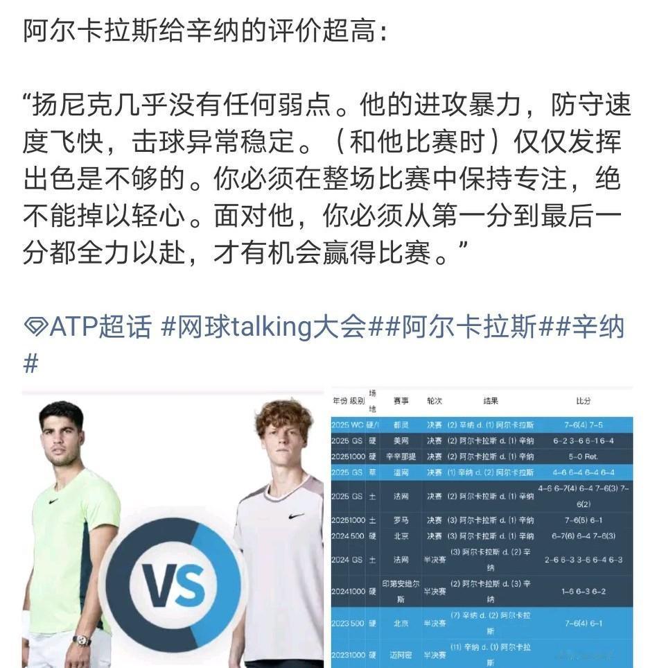 你说错了!应该是辛纳被阿卡打服了!交手记录是5:10!
