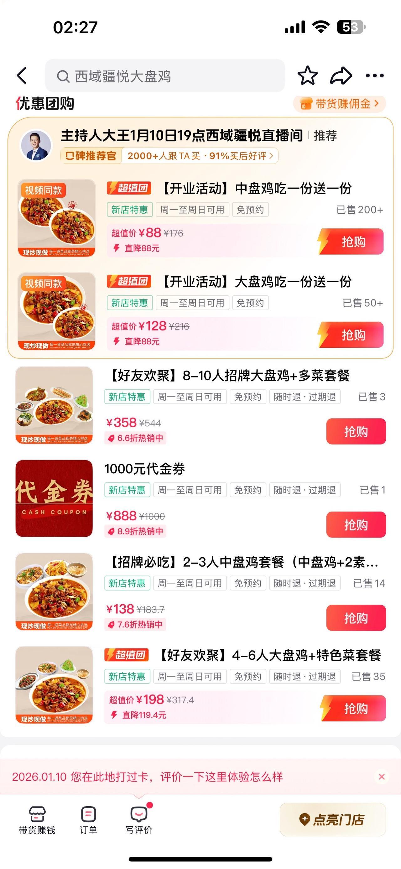 全国地方菜直播第32名【西域疆悦大盘鸡专场直播】圆满成功,从1月1日-1月10日