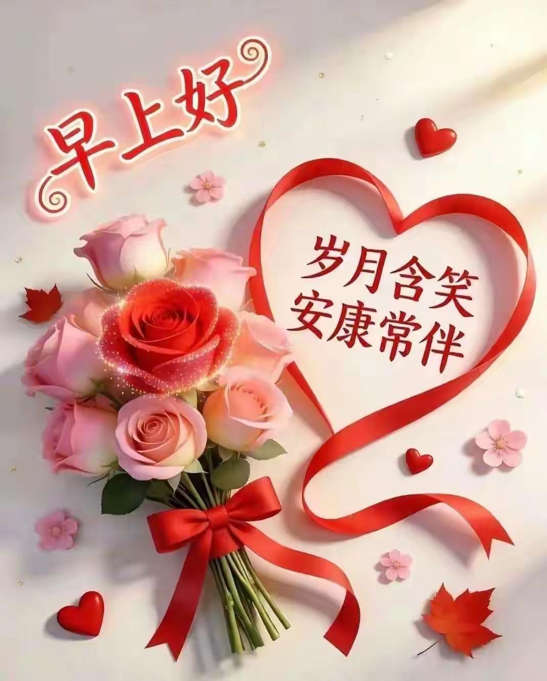 微笑迎日出,开心快乐每一天!温馨的祝福送给你:吉祥如意,万事亨通,阖家幸福安康![玫瑰][锦鲤到来][招财进宝][福][大笑][祈祷]