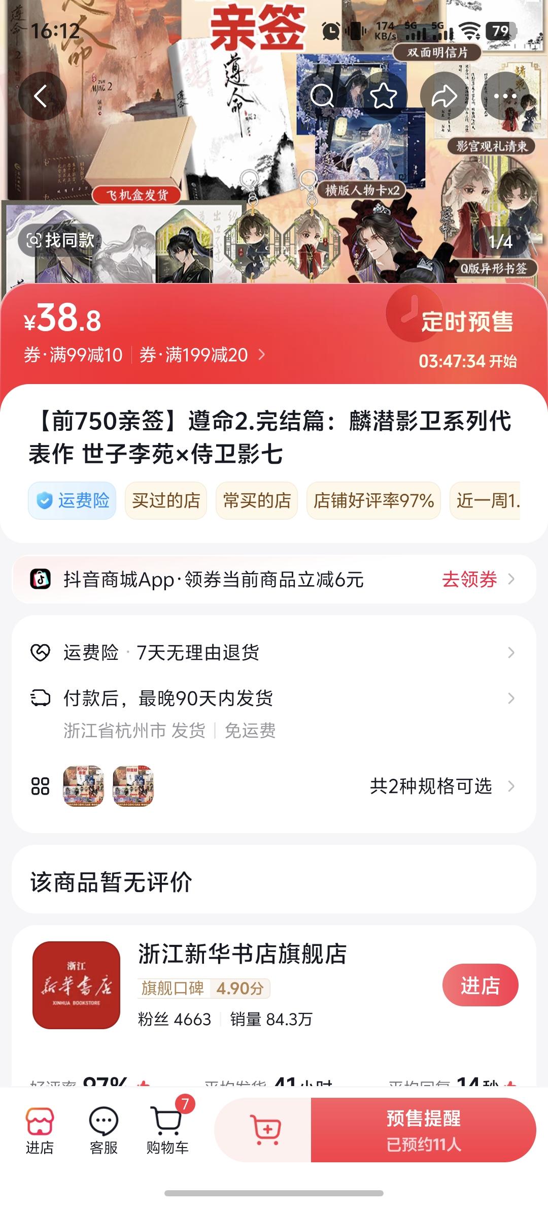 亲爱的读者朋友们:。温馨提示:因店铺安排变动,2026年1月10日晚19:00预售的《捡星星》与20:00预售的《遵命2完结篇》,现已由【浙江新华书店】转移至【浙江新华书店旗舰店】进行发售。 下方截图为【浙江新华书店旗舰店】店铺《捡星星》和《遵命2完结篇》商品链接页面,原店铺【浙江新华书店】的商品链接会同步下架。如果您计划抢购特签或亲签版本,请记得及时更新购买链接,前往【浙江新华书店旗舰店】下单,避免因走错店铺或链接失效造成购买失败。 捡星星 遵命 不问三九 麟潜 追更少女的后花园 谢谢大家