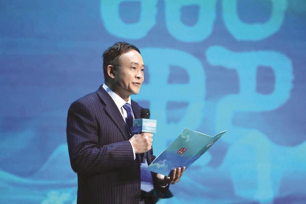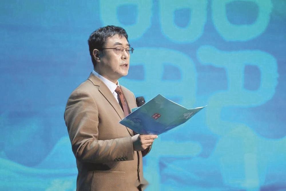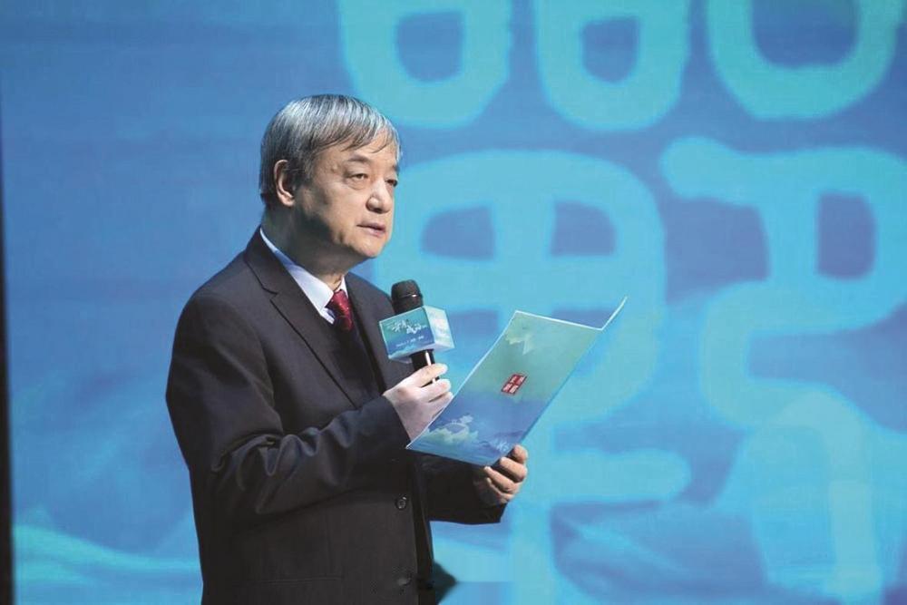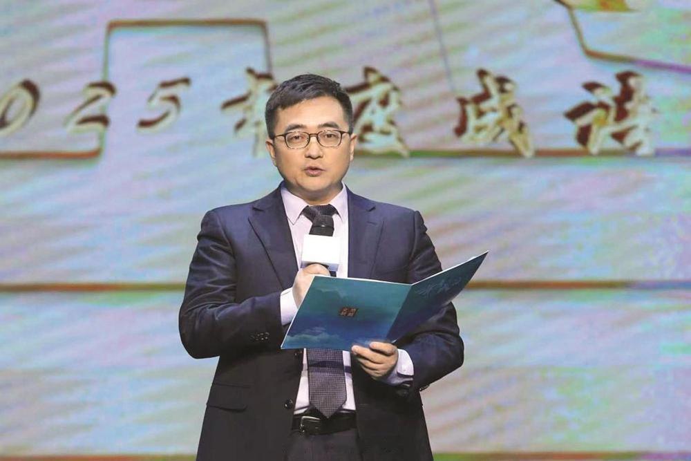 图为中国传媒大学教授、博导,国家语言资源监测与研究有声媒体中心主任邹煜发布“2025年度成语”之“海纳百川”。