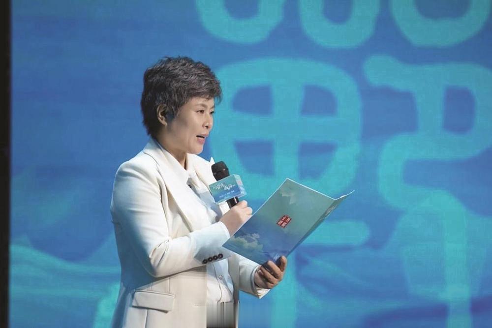 图为教育部政策法规司原巡视员、第七届国家督学顾问王家勤发布“2025年度成语”之“绿水青山”。