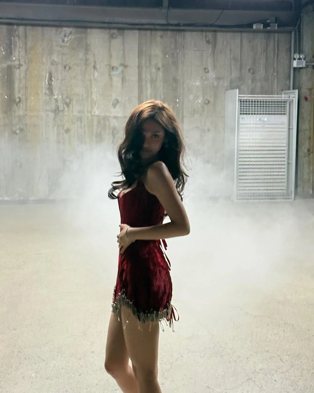 Jennie今日这条红色礼服,宁艺卓之前也穿过,四舍五入就相当于同框了,两人都好美啊! 宁艺卓 jennie 图源 网络