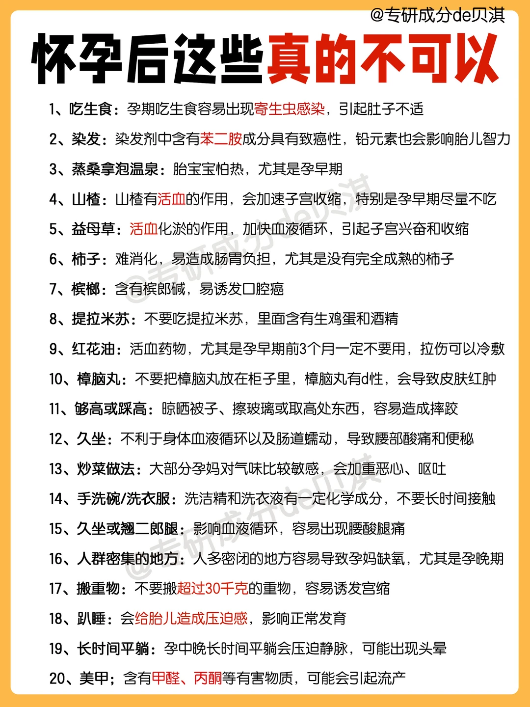 怀孕后哪些食物不能吃?哪些事不能做?孕期每个月有哪些注意事项⚠️今天一篇看懂!建议保存好并转给老公婆婆一起看,以备不时之需。