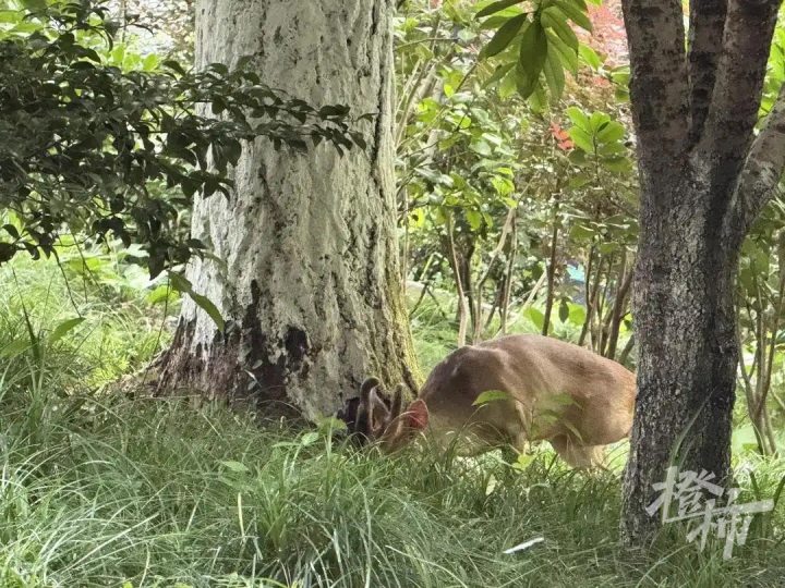 2025年7月20日,有市民在杭州动物园门口旁,看到一只疑似“小鹿”的动物,在啃食绿化带。“是不是动物园里跑出来的?”动物园工作人员答复:这是一只黄麂,不是动物园里的,是野生的,已经在周边很久了。