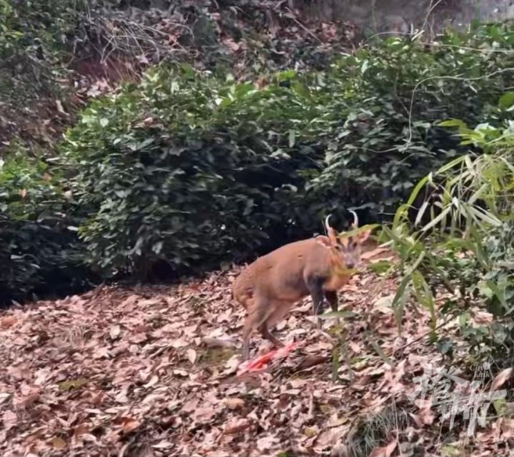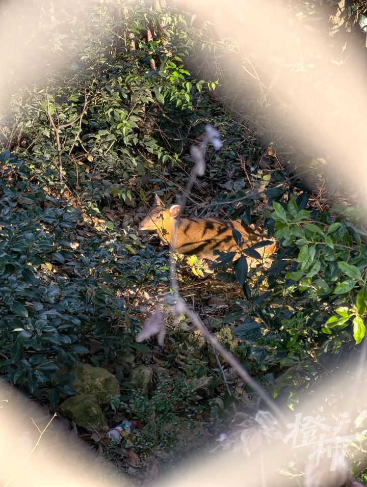 这位杭州市民告诉橙柿记者,2025年的最后一天,他爬南高峰,意外遇到了一只黄麂。