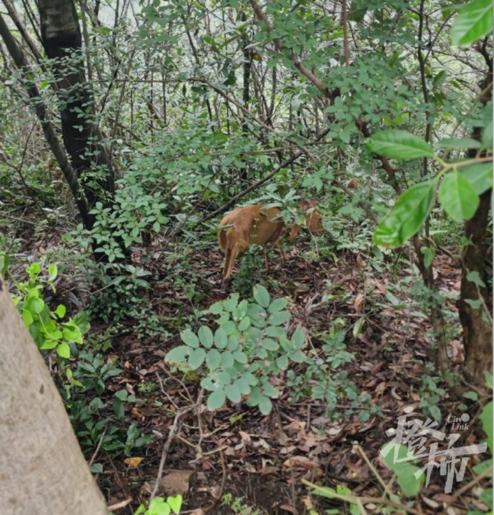 “刚开始以为是两只狗,再仔细辨认,是两只黄麂,比狗的体态要大一些。”