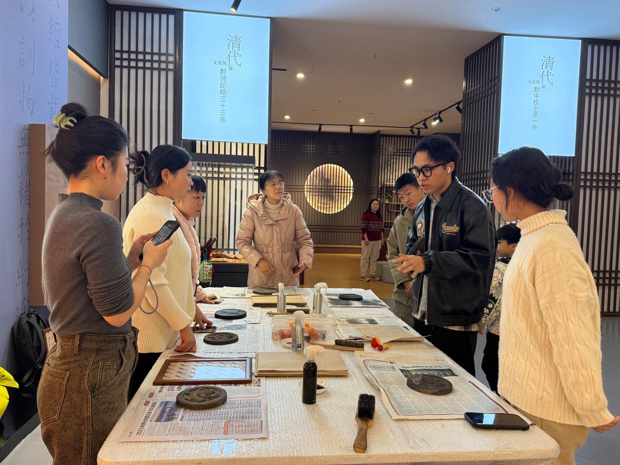 本次活动分为上、下午两场。上午场为“墨韵留痕·瓦当印刷”,由贵州省图书馆古籍保护中心的教师介绍中国印刷技艺的历史,讲述非物质文化遗产背后的文化故事。