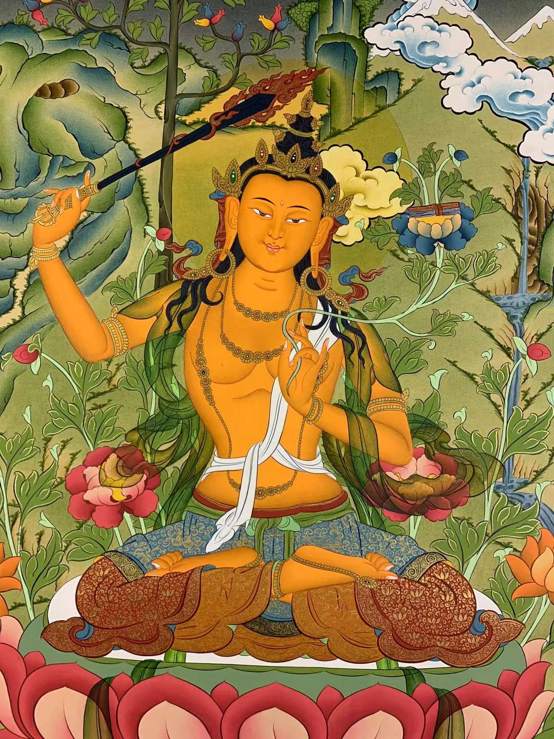 接下来请朋友们欣赏一组沃唐卡编号为173-586157的文殊菩萨唐卡: