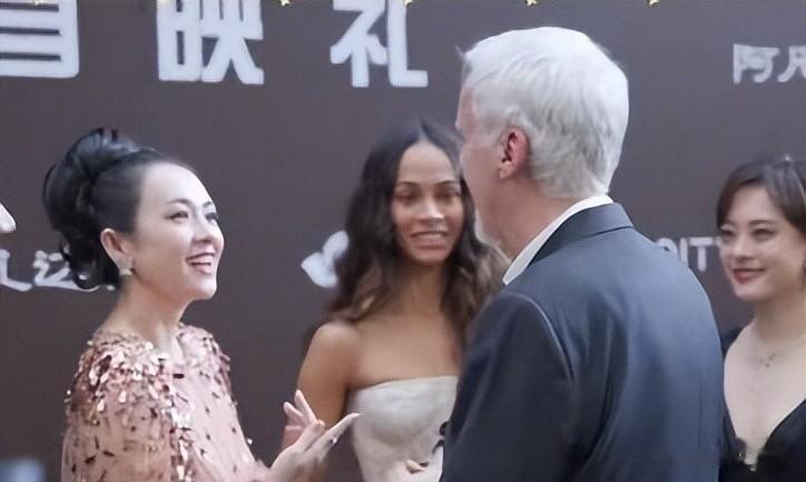 在卡梅隆和佐伊面前,章子怡全程笑得特别灿烂,态度谦和得不行,主动上前跟他们合影、聊天,嘴里全是夸赞的话,一会儿说卡梅隆导演功力厉害,一会儿说电影拍得精彩。