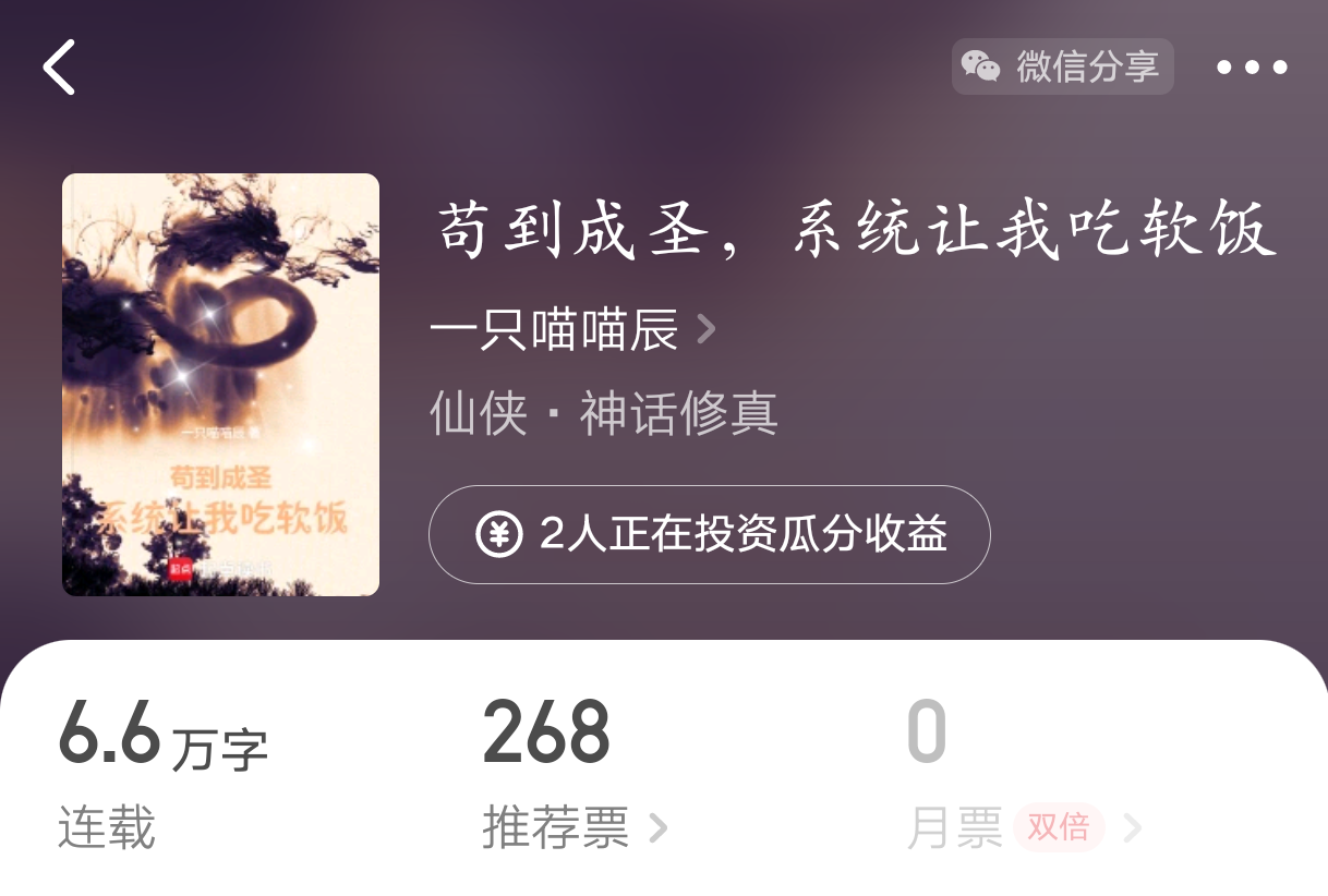 味不太足的穿越系统文,穿越不用说了,这个系统以羁绊为名,虽然标题上写着灵魂是吃软饭但开头部分功能还没完全展开,就真的看不懂这玩意到底哪里好用了。