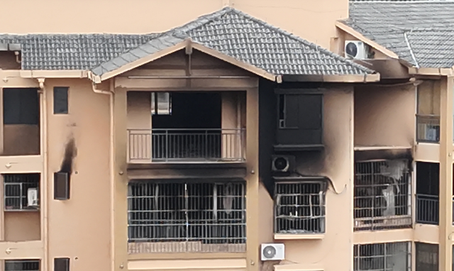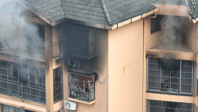 建筑外墙被熏黑。图源:贵州消防