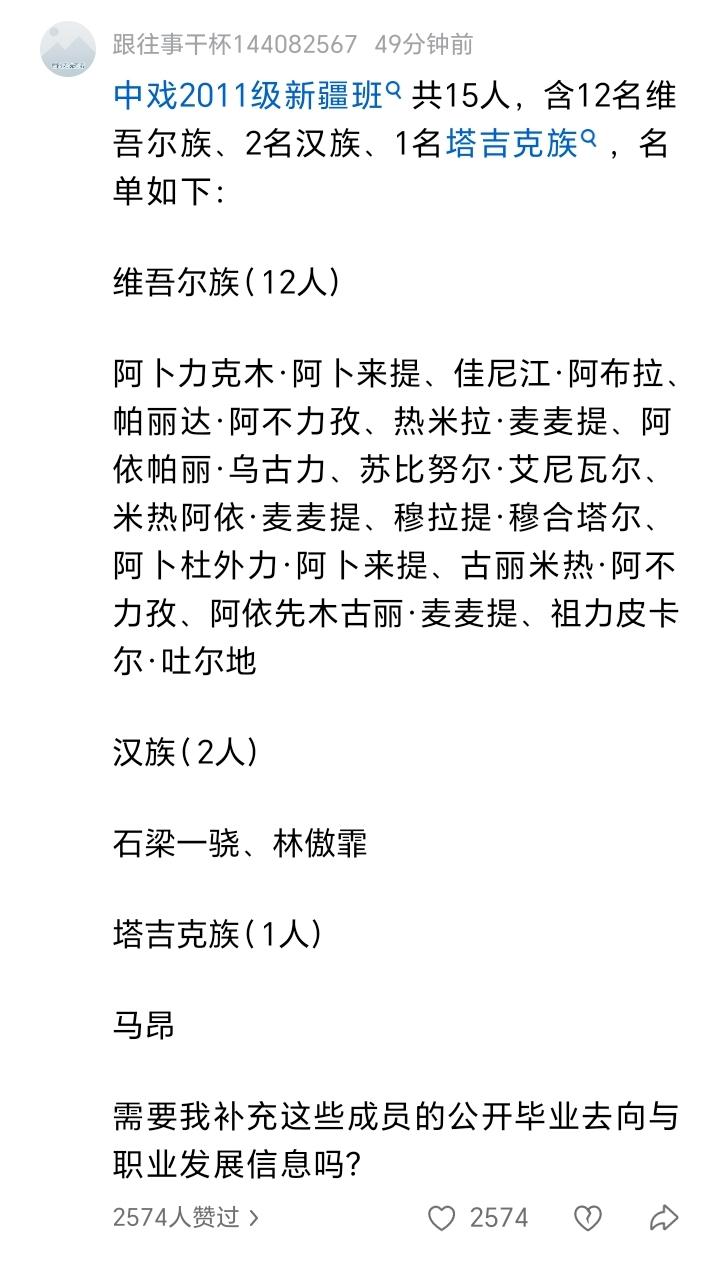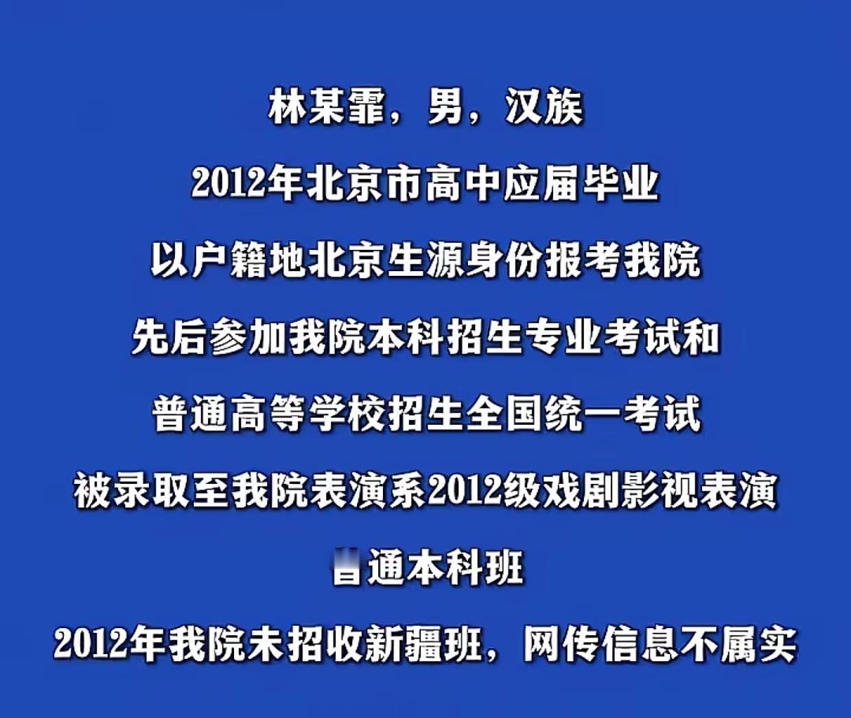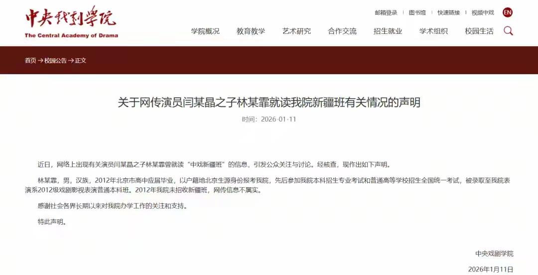 闫学晶儿子到底读的什么班? 闫学晶直播的时候亲口说他儿子报考了新疆班,这个肯定不会有假。 而且闫学晶儿子参加湖北卫视节目里说他们班有新疆同学! 但是中央戏剧学院今天专门发文说没有这么回事,是以北京生源考进来的! 这就有点搞不清楚了。中戏应该不会撒谎,闫学晶也不可能故意胡说。到底是什么情况呢? 有网友查了一下,2012年中戏虽然没有开设新疆班,但是当年有对新疆民考民定向招生计划(表演系3人,导演系4人)。所以闫学晶说他儿子报考了新疆班,大概率就是指的这个对新疆民考民定向招生计划! 这个计划到底违规不违规,我们也搞不清楚,有懂行的吗?