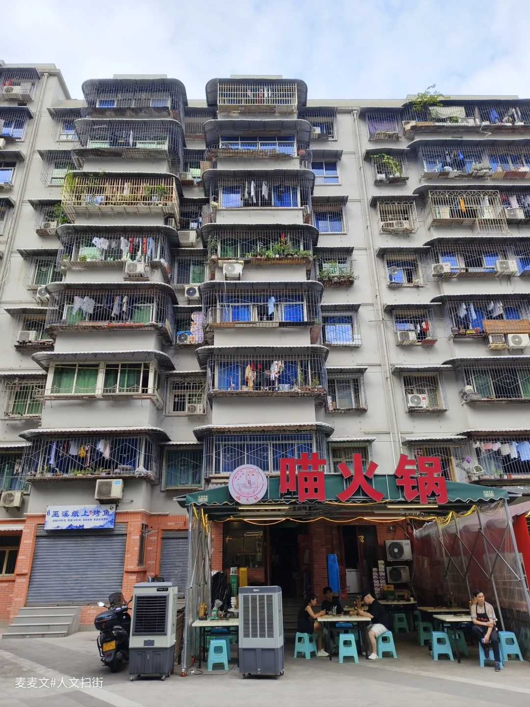 小区虽老,生活却便利。转角是五里店菜市场,楼下有理发店和杂货铺,老人们坐在花台边摆龙门阵,孩子们追逐打闹。偶尔还能听见麻将碰撞的脆响,混着火锅的麻辣香气,构成最鲜活的老重庆图景。