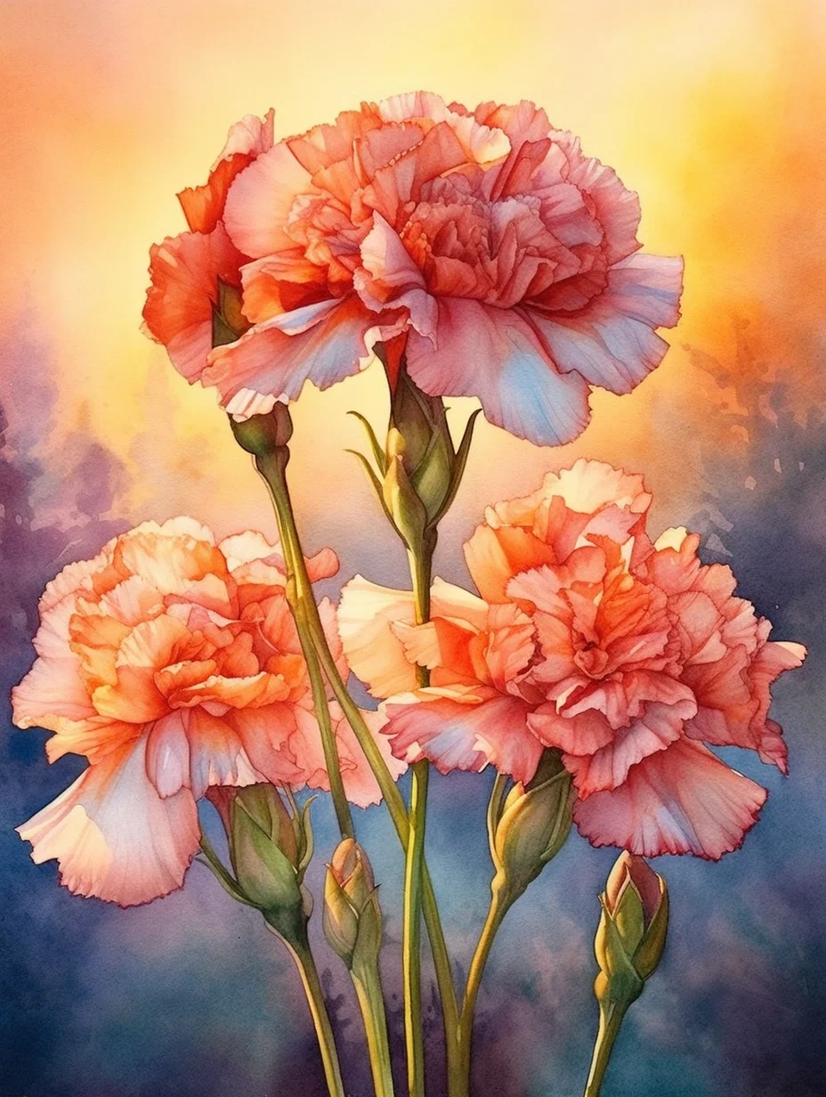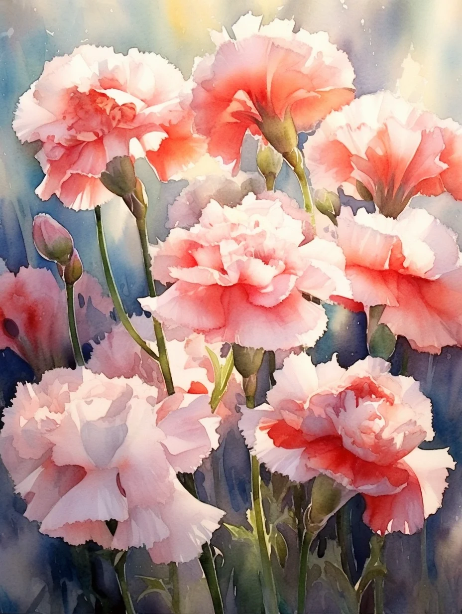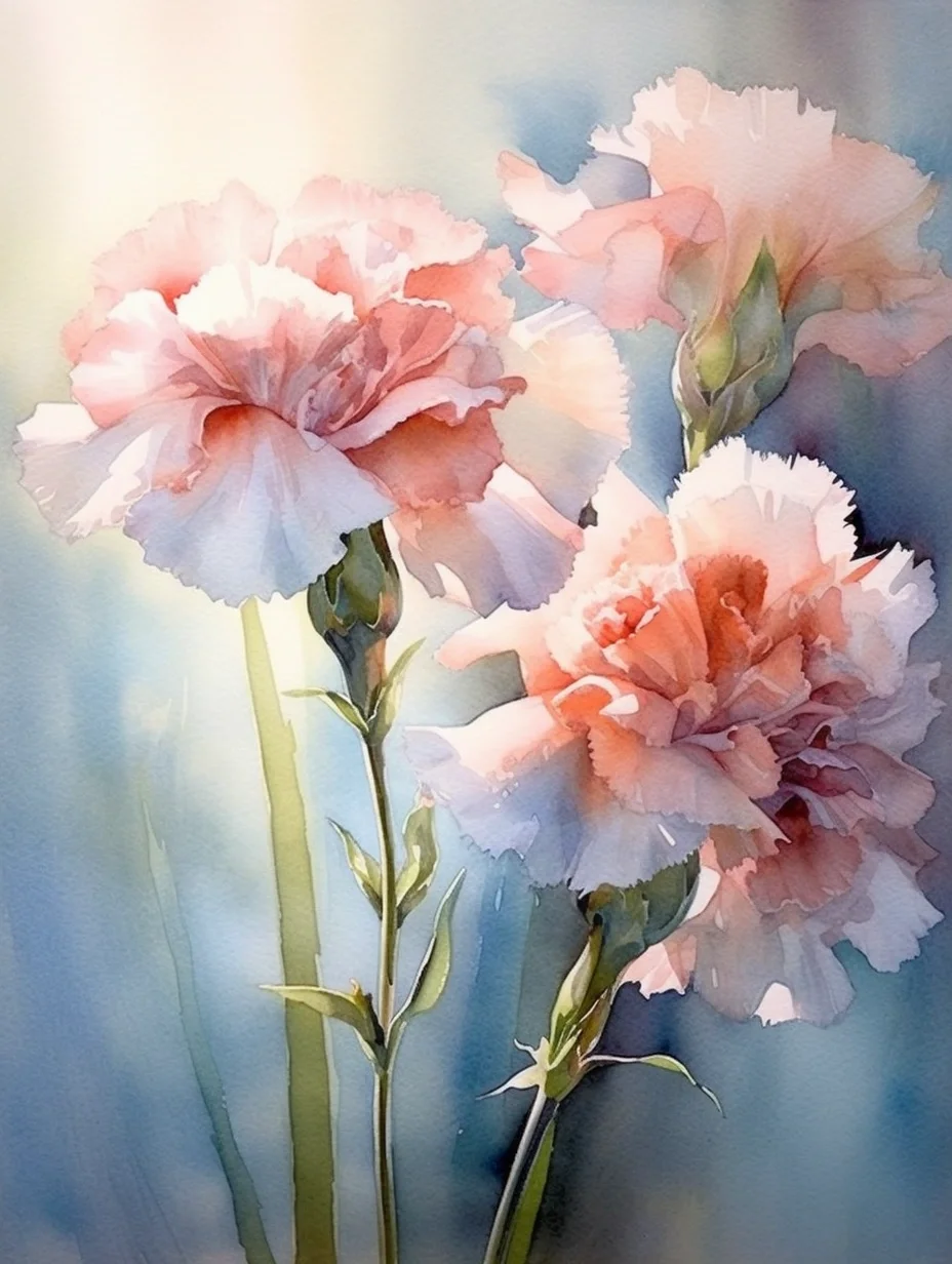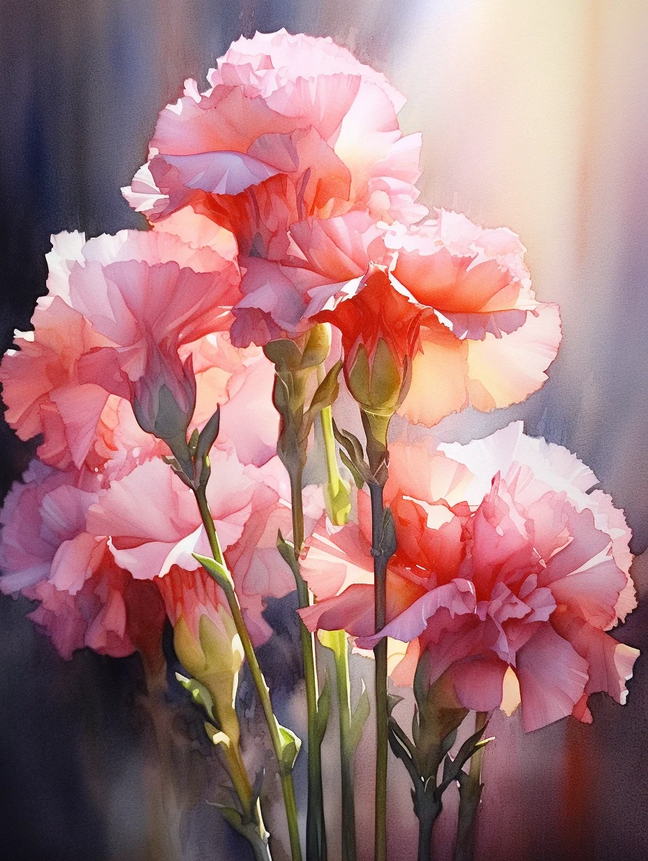 水彩 midjourney AI 康乃馨