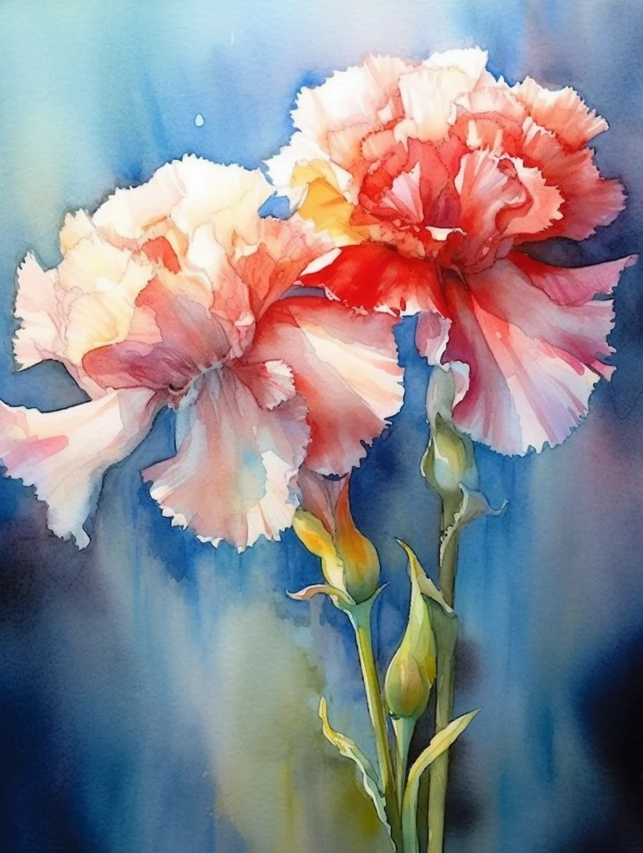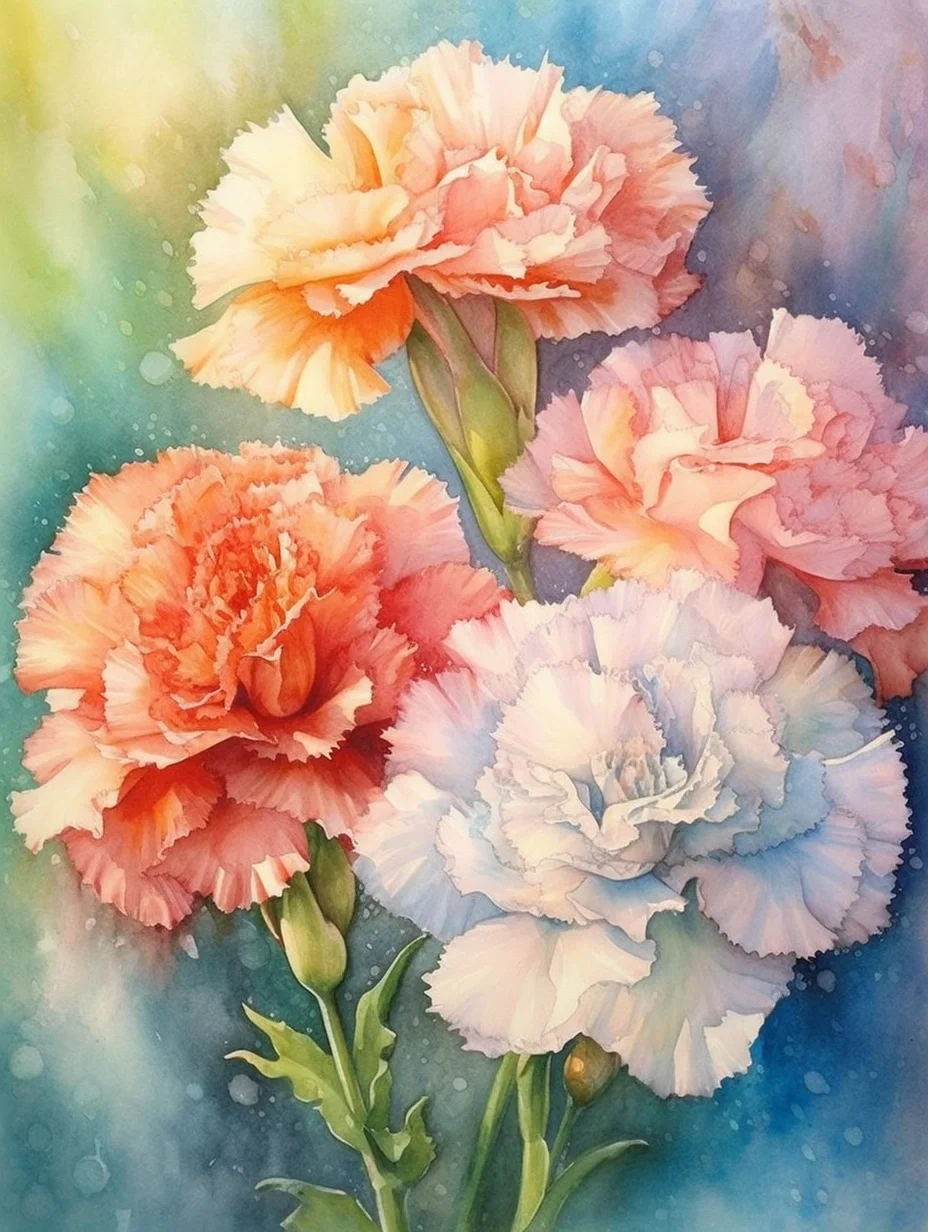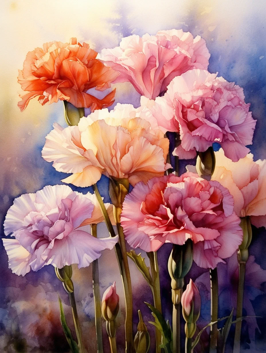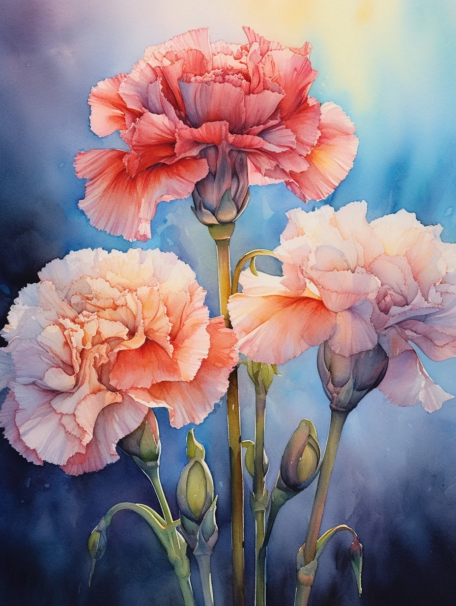 水彩 midjourney AI 康乃馨