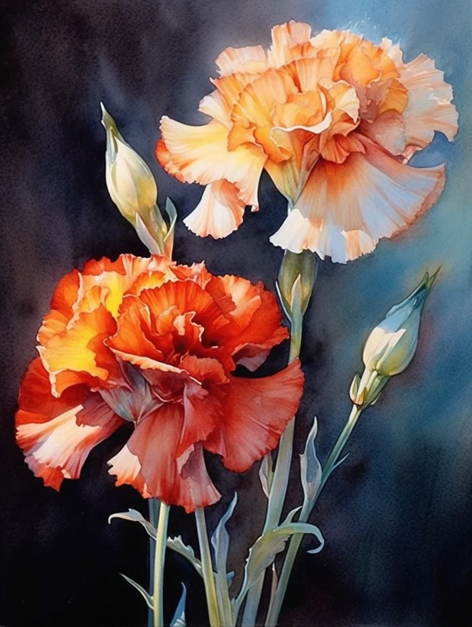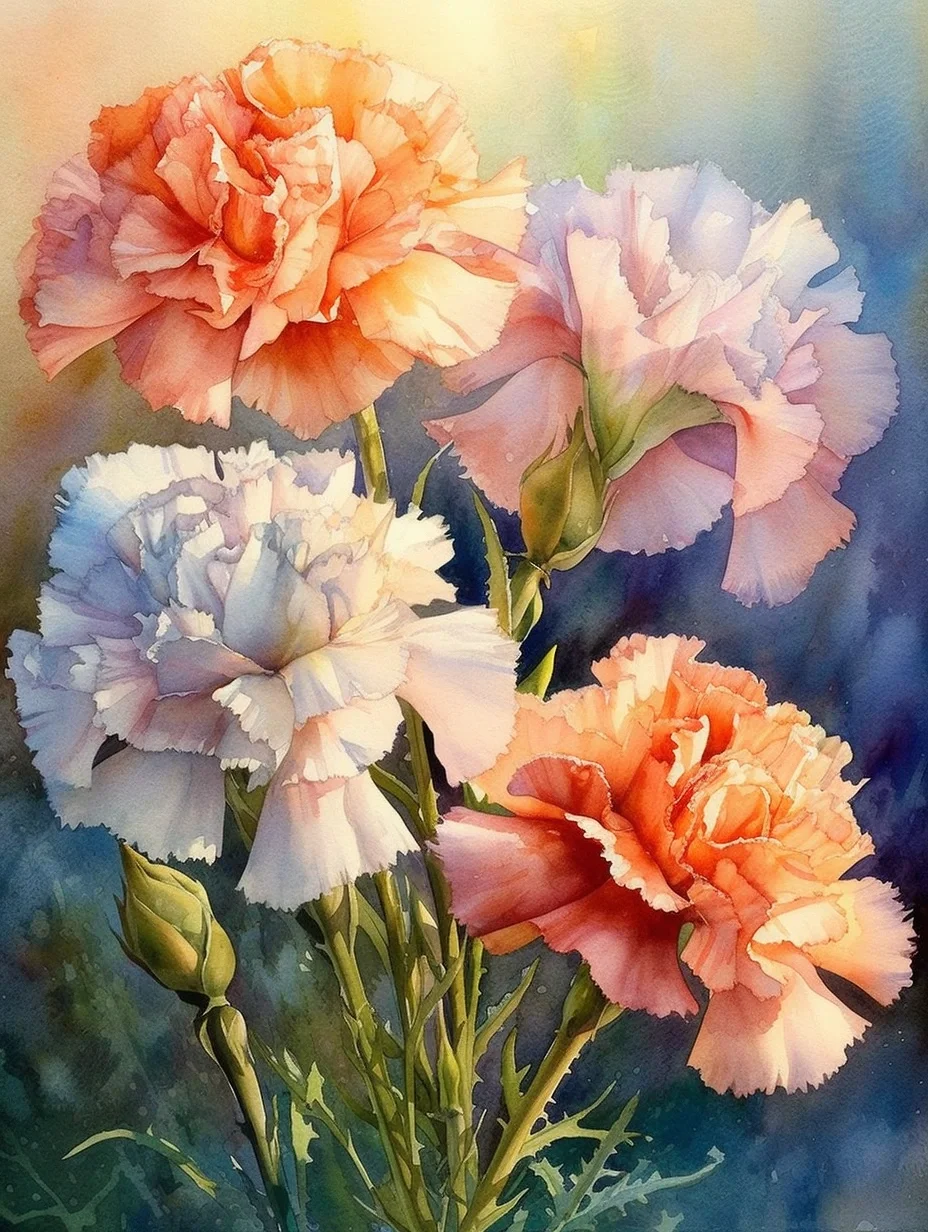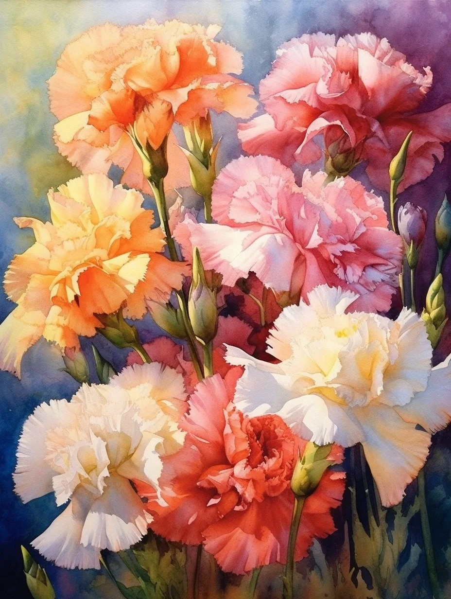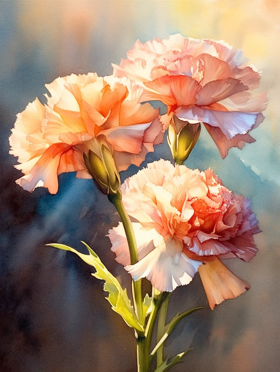 水彩 midjourney AI 康乃馨