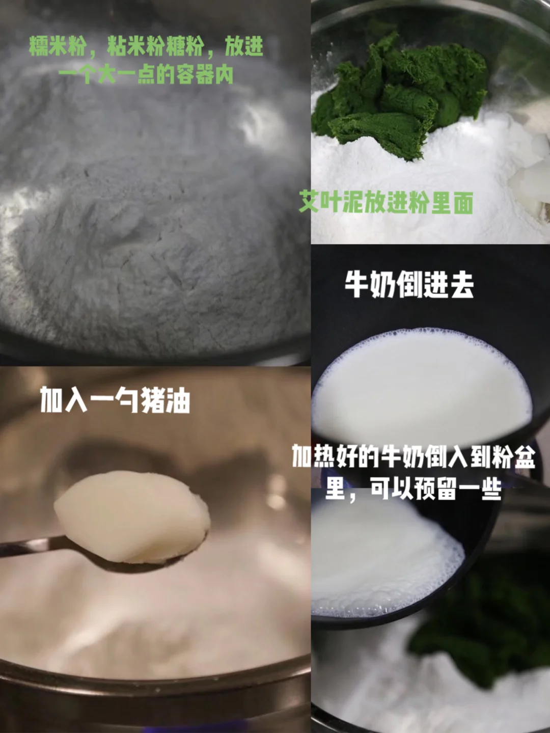 19.糯米粉和粘米粉糖粉,放进一个大一点的容器内20.加入猪油