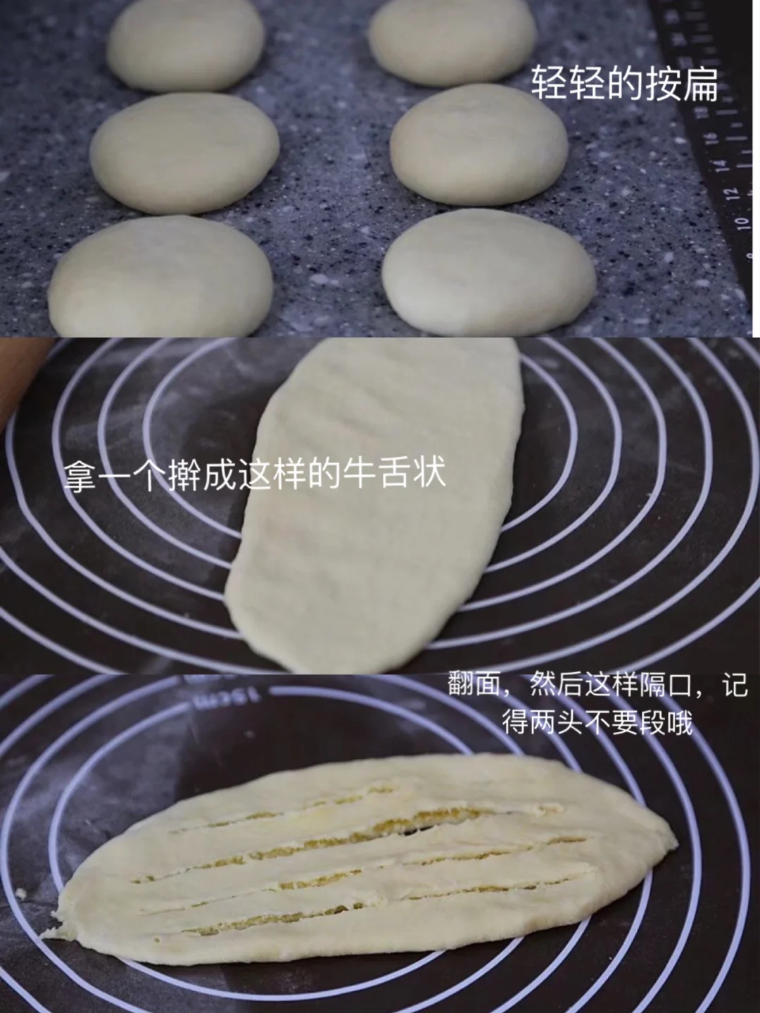 14.拿一个圆饼出来,擀成这样的牛舌状