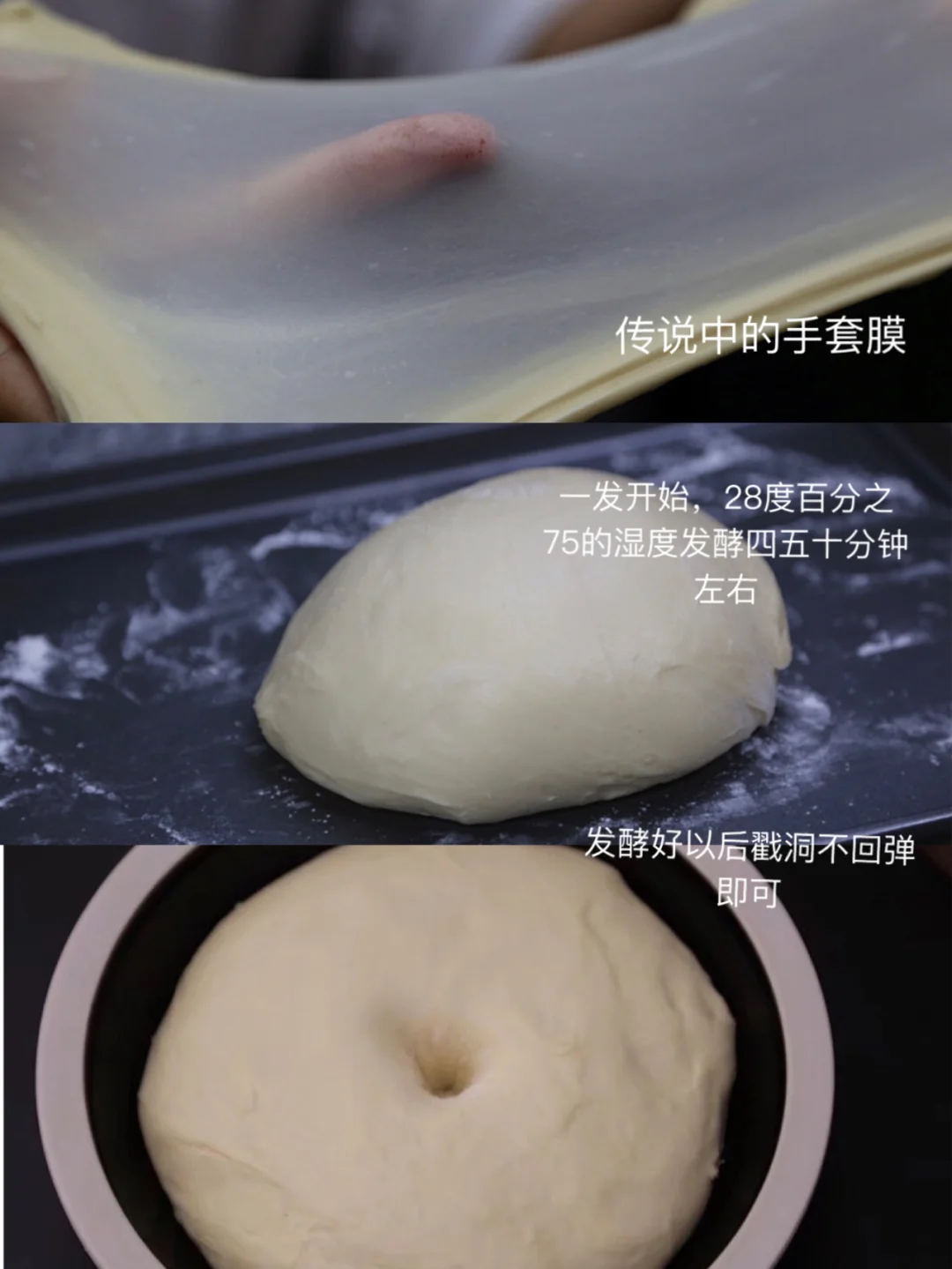 4.可以用剪刀剪一团面团下来,慢慢打开,这就是手套膜 破洞也是光滑无锯齿的