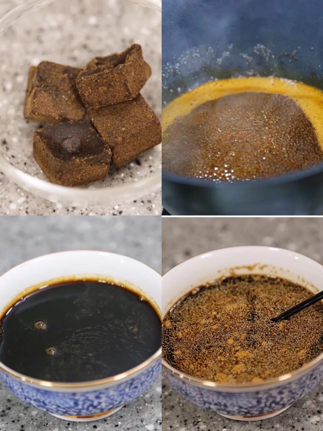 2.红糖块和100g左右的水稍煮一下,红糖融化即可