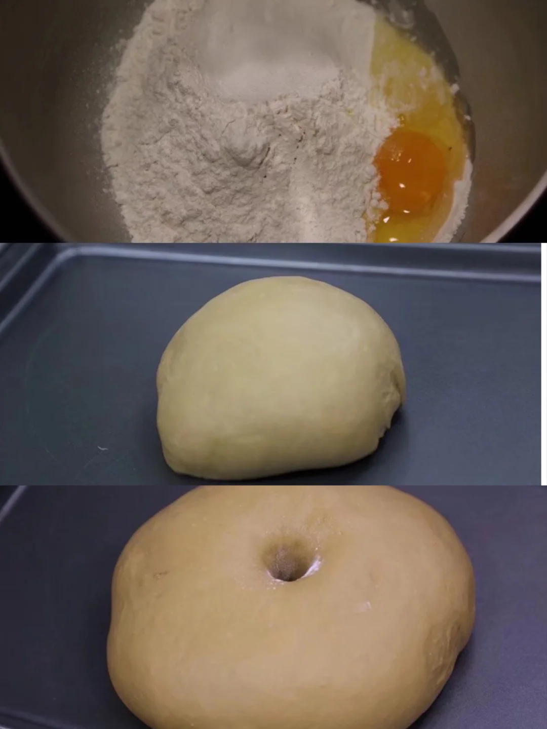 7.发酵至大概两倍大的样子就可以了,手指沾高粉戳洞进去,不会马上回弹,微微有很正常的
