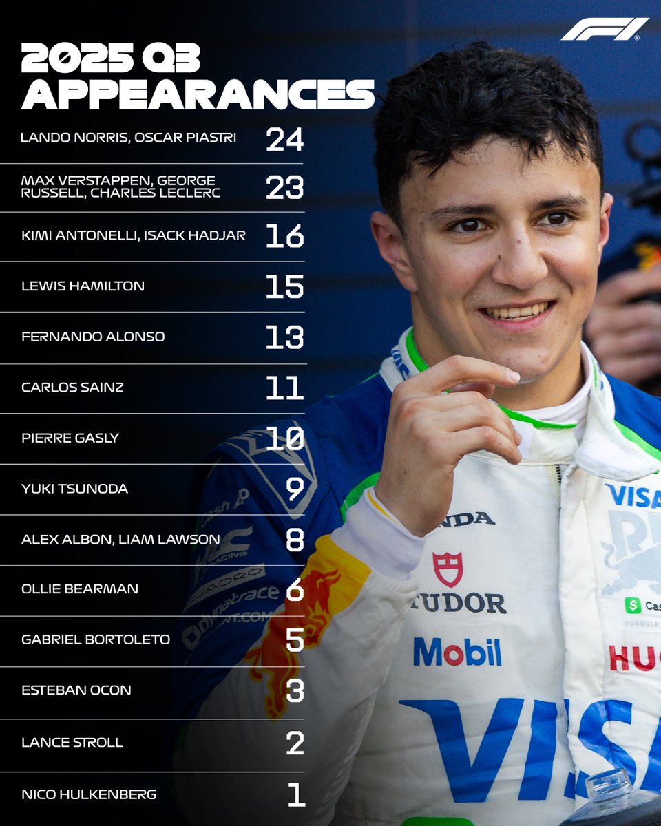 F1官方推特账号报道,2025赛季令人印象深刻的三练出场阵容...包括迈凯轮双雄100%的出场率!#F1