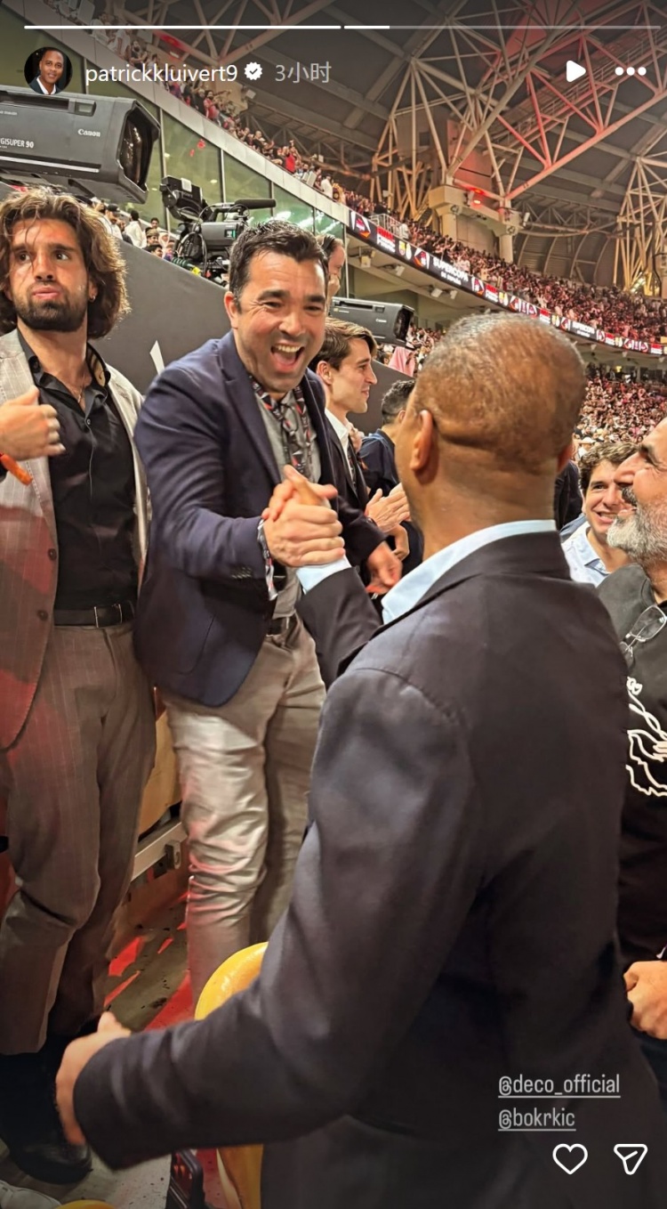 巴萨名宿克鲁伊维特现场观看了这场比赛,见证老东家夺冠,并与巴萨总监德科见面,他在社交媒体上晒出相关照片。