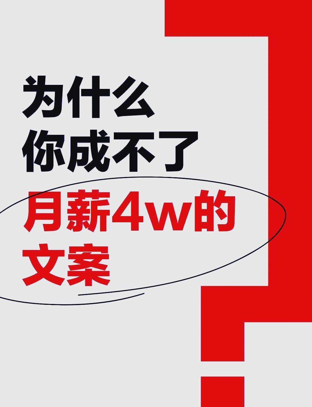 月薪4000和4万的文案,差在哪?3个词说透! 别不信,你写的文案不值钱,问题就出在这三点上。 月薪4000的文案,是产品的“记录员”。他写:“这款手机充电快,像素高”。月薪4万的文案,是用户的“翻译官”。他写:“早上洗漱5分钟,电量足够你刷一天;孩子奔跑的瞬间,你能抓住他每根发丝”。前者罗列参数,后者贩卖体验。客户买的从来不是功能,是功能带来的美好感受。 月薪4000的文案,是自说自话的“播音员”。他喊:“高端品质,奢华享受!”月薪4万的文案,是促膝长谈的“老朋友”。他说:“知道你累,这个设计能让你多睡10分钟。”前者用夸张形容词,后者用具体场景。一个在喊口号,一个在说人话。哪个能钻进用户心里,一目了然。 月薪4000的文案,是等活干的“计时工”。给一段写一段,交差就行。月薪4万的文案,是操盘全局的“合伙人”。他会问:这次传播想影响谁?解决他们哪个具体麻烦?文案只是子弹,策略才是那把枪。前者在堆砌文字,后者在设计用户的认知路径。 有人说,好文案就是玩文字游戏,是抖机灵。这话对一半。真正的核心,是看你能否钻进用户脑子里,用他的语言,解决他的痒处。文案的价码,不取决于你写了多少字,而在于你读懂了多少人。 你觉得,一篇好文案,到底是技巧重要,还是懂人心重要?来评论区杠一杠!150爆款文案 手把手教学文案 薪资文案 对比文案 招聘文案 销售文案技巧 文案行业