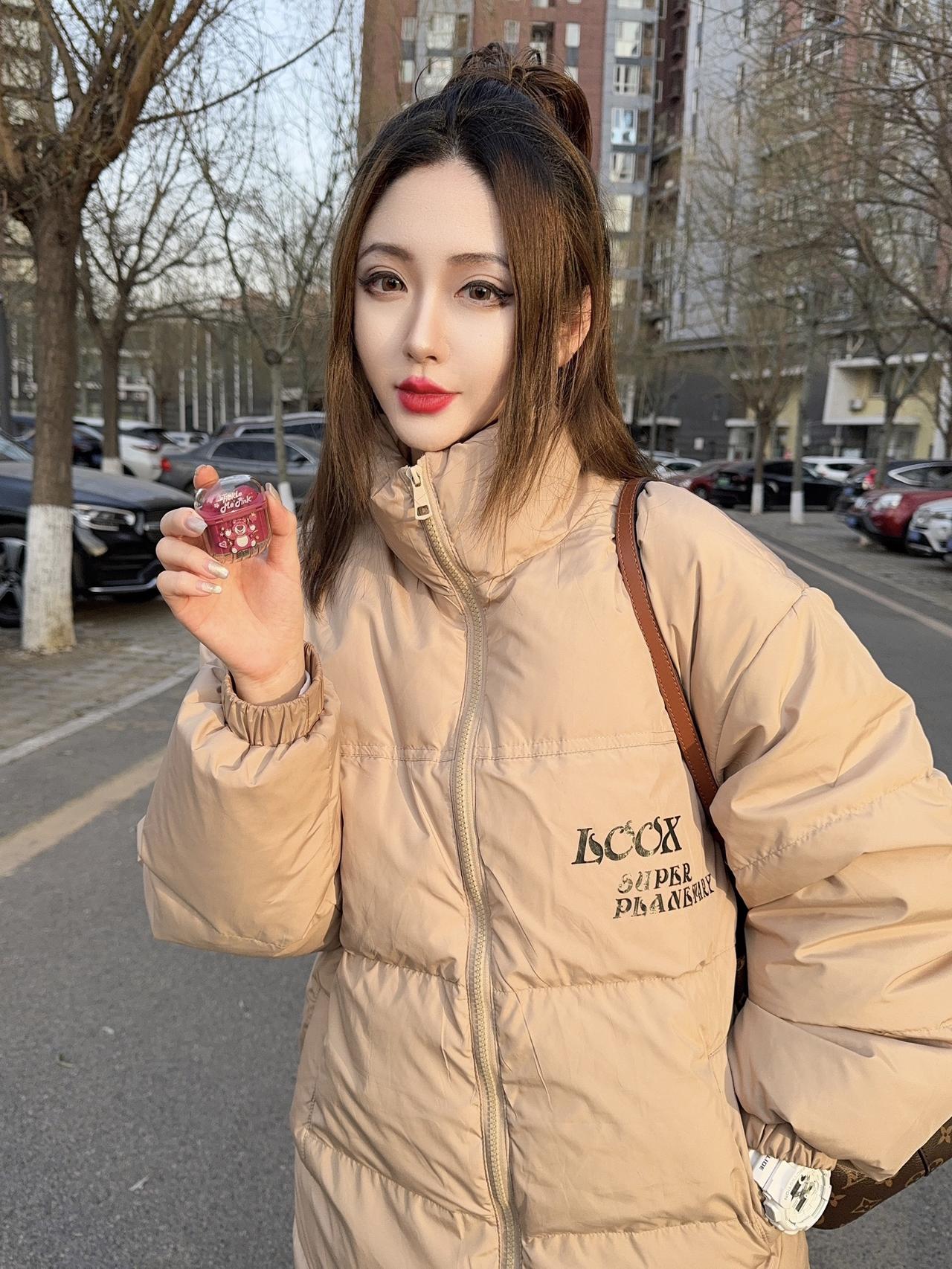 都市时尚穿搭,浅灰色羽绒服搭配蓝色紧身牛仔裤,轻松出行!