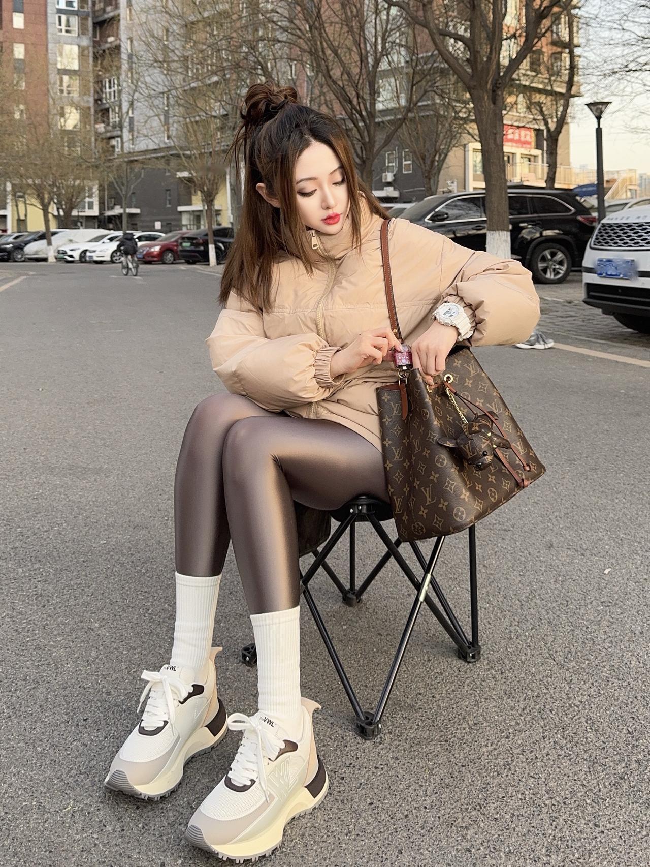 ootd穿搭 冬季穿搭 美拉德穿搭 光泽裤 健美裤