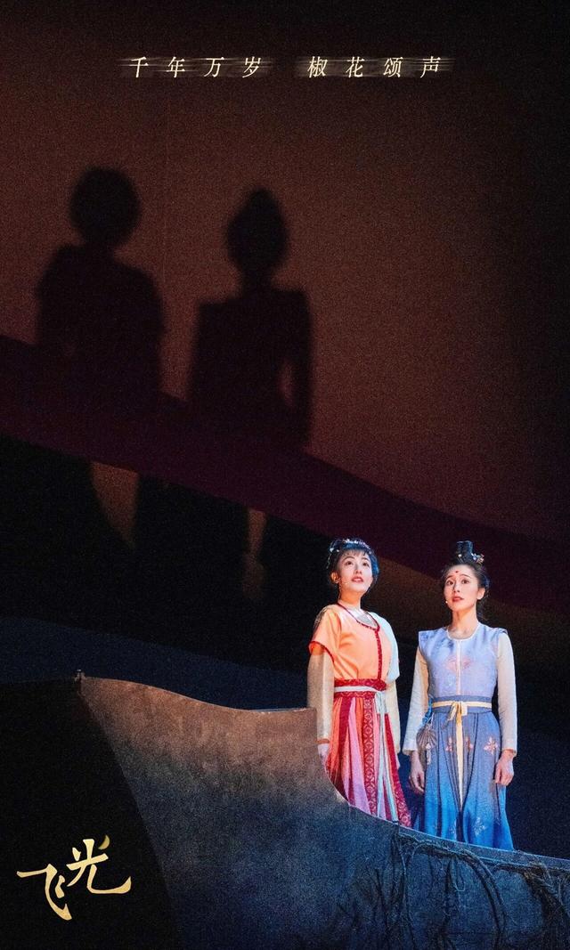 《飞光》是严格符合三一律的单一场景迷你剧,16岁的太平公主和17岁的上官婉儿在七夕夜偶遇,两个少女从相互欺瞒、试探到彼此交心,这是让许多女观众泪洒剧场的“女孩情谊”。剧作并不试图还原公元7世纪的两个深宫少女的处境,太平公主和上官婉儿如星辰的光芒凌驾于时间,她们共同为我们这个时代的姑娘们代言。她们短暂相处的这一夜,话题集中地讨论了母女关系里的托举和摩擦、形同虚设的父亲、享受着资源特权却才德不配位的兄弟们、多子女家庭里女孩的配得感、女性如何进入权力的系统以及高位女性被男性叙事的污名化……太平和婉儿是谁已经不重要,重要的是从这两个少女形象里输出的观点——对古往今来性别政治的质疑和挑战。