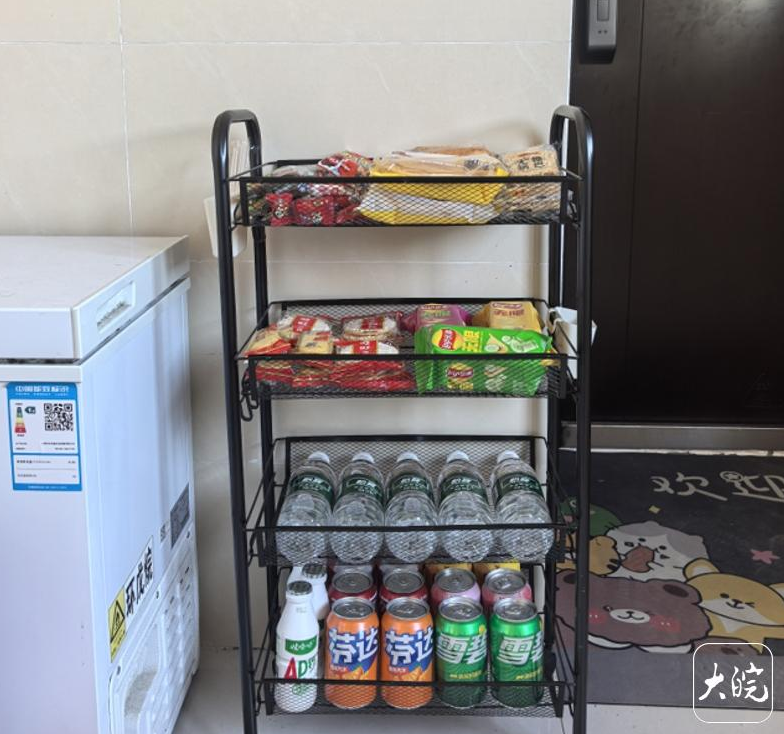楼道里的“暖心驿站”!池州一市民在家门口设零食架供外卖员自取