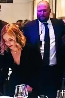 梅洛尼身后这位男士是真壮啊! 站在梅洛尼身后,这高大的体型特别显眼啊! 站在旁边梅洛尼是不是特别有安全感啊!