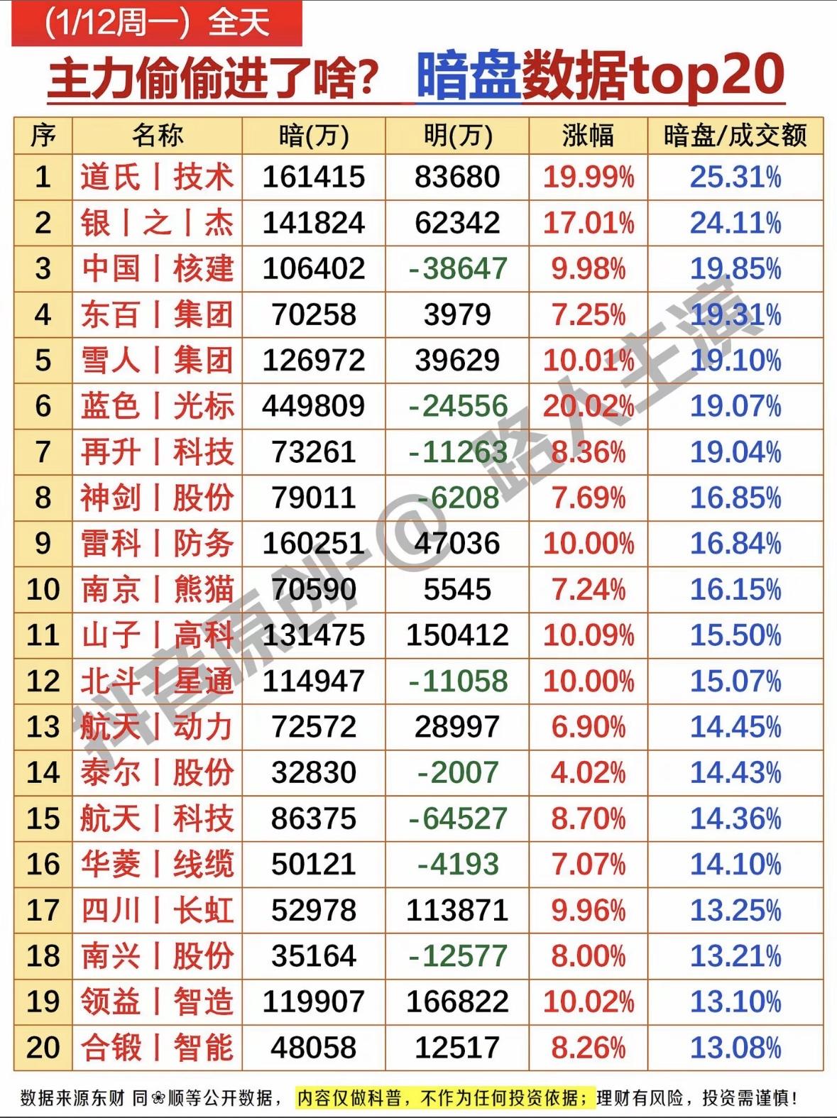 揭秘主力偷偷进了啥?📈💰 "暗盘数据Top20出炉!道氏技术领涨19.99