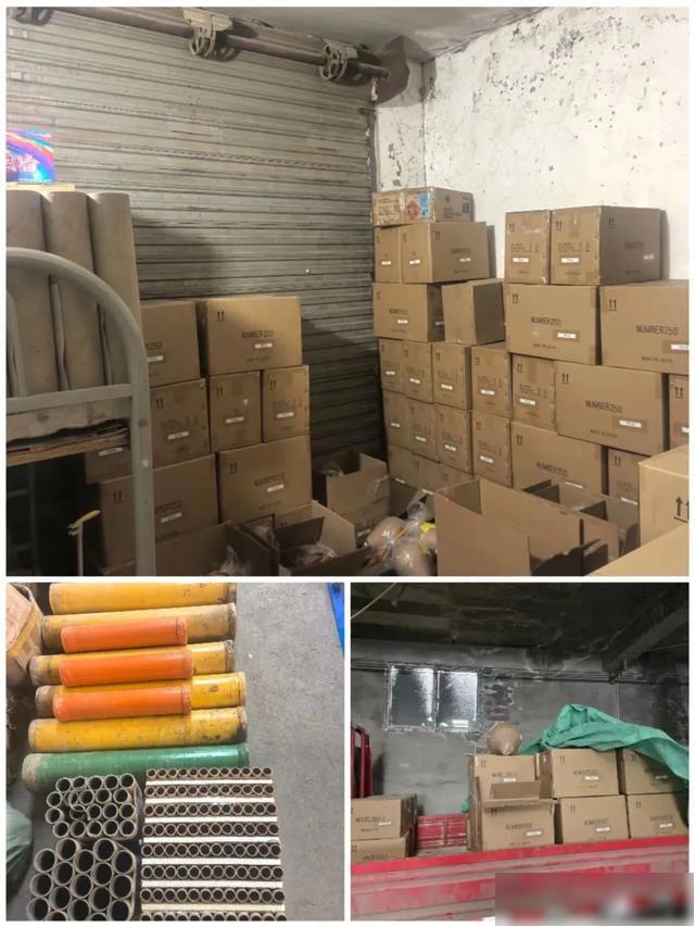 分局立即组织警力对库房展开突击检查。现场查获大量大型礼花弹、雷王、发射炮管及鞭炮等烟花爆竹,当场抓获违法嫌疑人李某某。