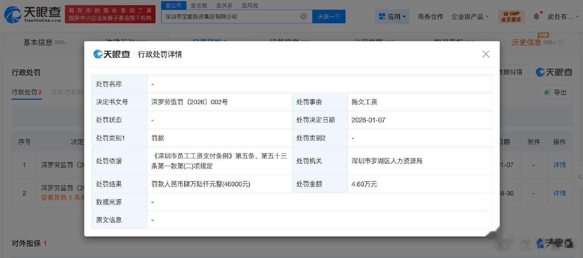 #姚振华名下宝能集团拖欠工资被罚4.6万#