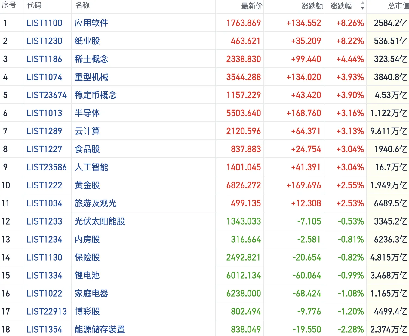 其他方向上,AI概念集体爆发,成为短线最强热点。相关的半导体芯片、算力股跟涨。此外,餐饮、军工、有色等板块也纷纷上扬。